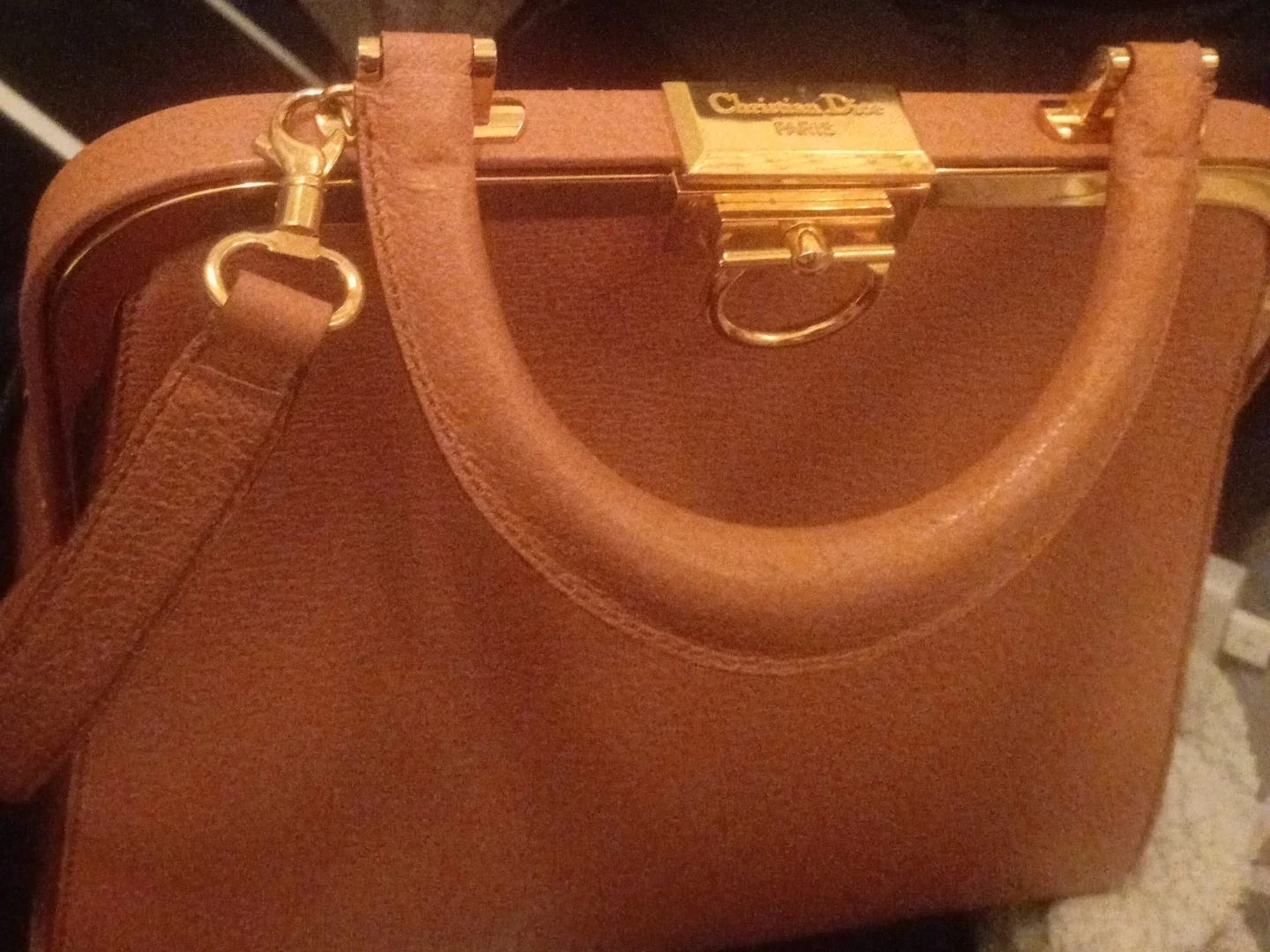 A lovely Christian Dior Paris handbag in a beautiful brown colour. It features gold hardware and a unique design. The bag comes with a shoulder strap for versatile wear. It's in great condition and ready for a new owner!