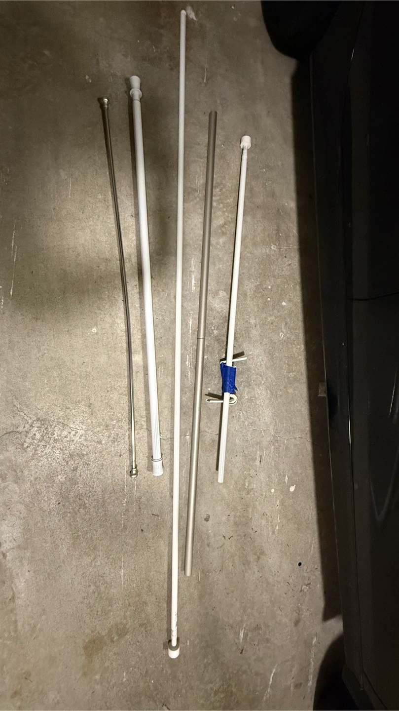 Selling various curtain rods. These are made of metal and plastic. They're great for extending your existing rod or for creating custom configurations. Pieces vary in length and diameter.