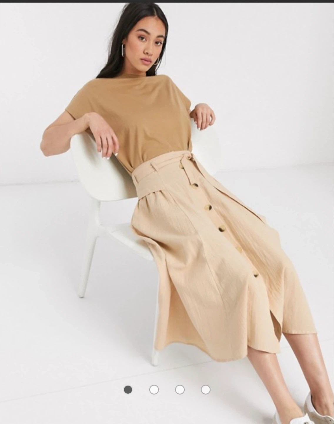 Selling a lovely beige button-front midi skirt from ASOS Design! It's a stylish and versatile piece that can be dressed up or down. Perfect for any occasion!