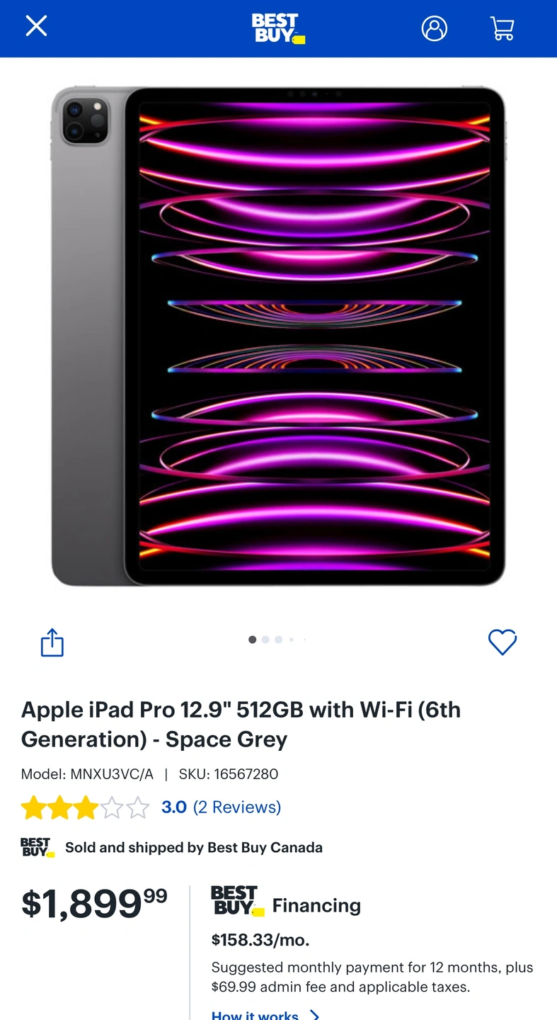 2023 6th Gen iPad Pro 12.9” 512GB Tablet. Retails for $1800 plus tax ($2034) Save hundreds.