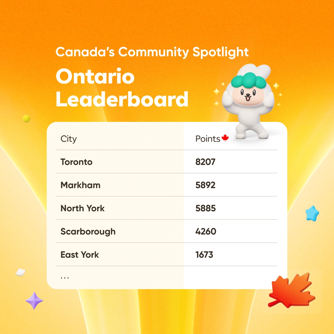 Here are the current top 5 cities leading the way in Ontario for our Community Spotlight Challenge π¨π¦