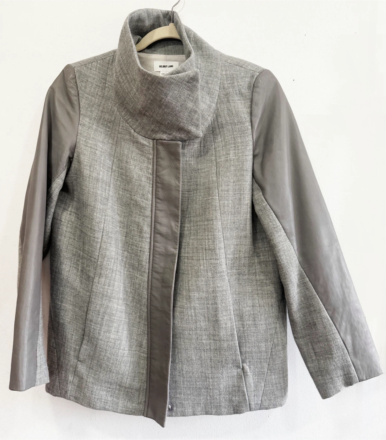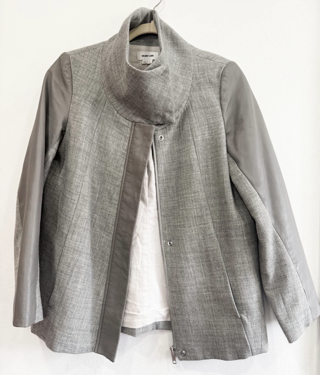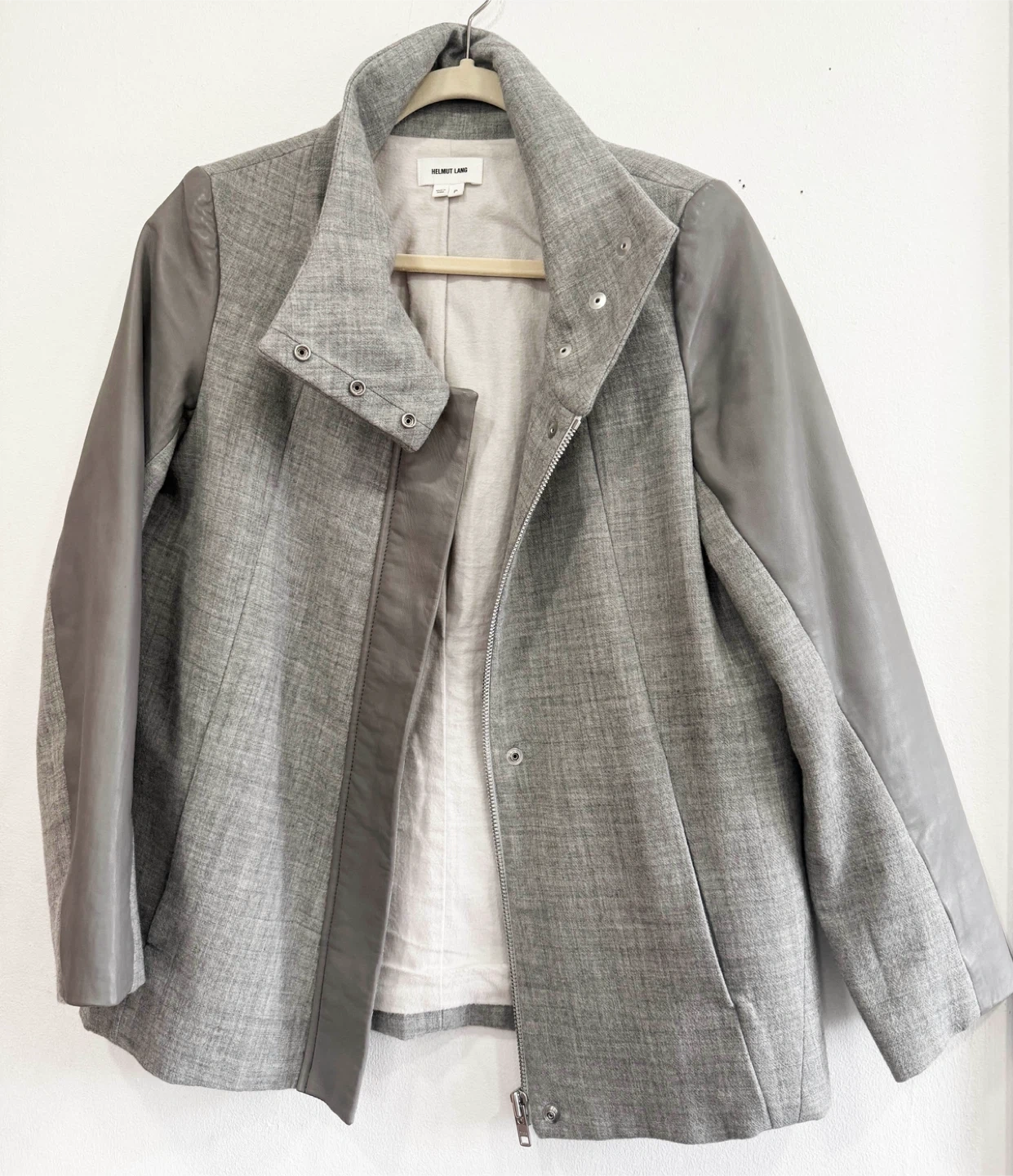 Helmut Lang Wool Blend Jacket with Leather Sleeves Size P