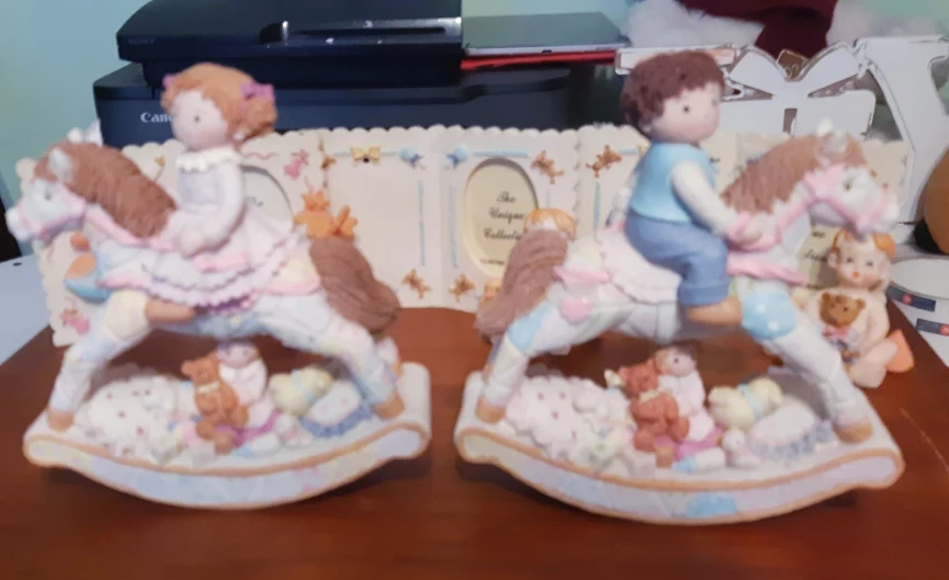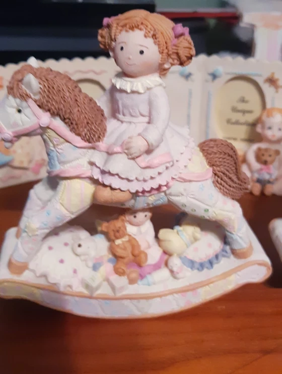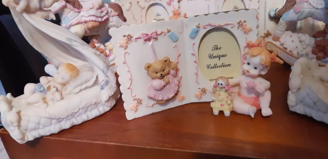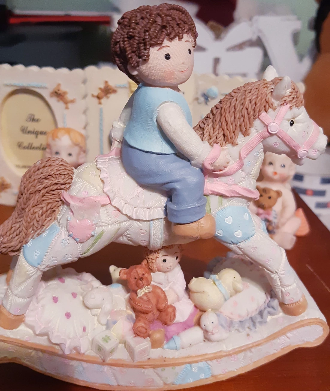 Selling these adorable figurines from The Unique Collection! They feature sweet designs with babies, teddy bears, and rocking horses. Perfect for a nursery or collector
