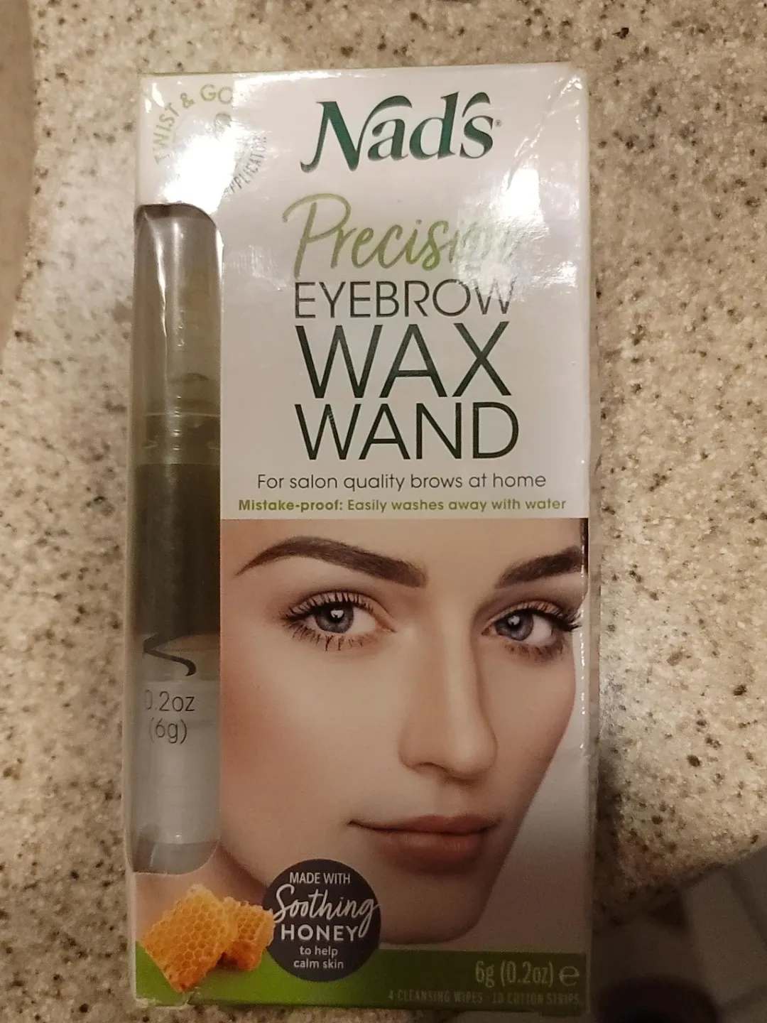 Nad's Precision Eyebrow Wax Wand for salon quality brows at home. It's mistake-proof and easily washes away with water. Made with soothing honey to help calm skin. Includes 4 cleansing wipes and 10 cotton strips.