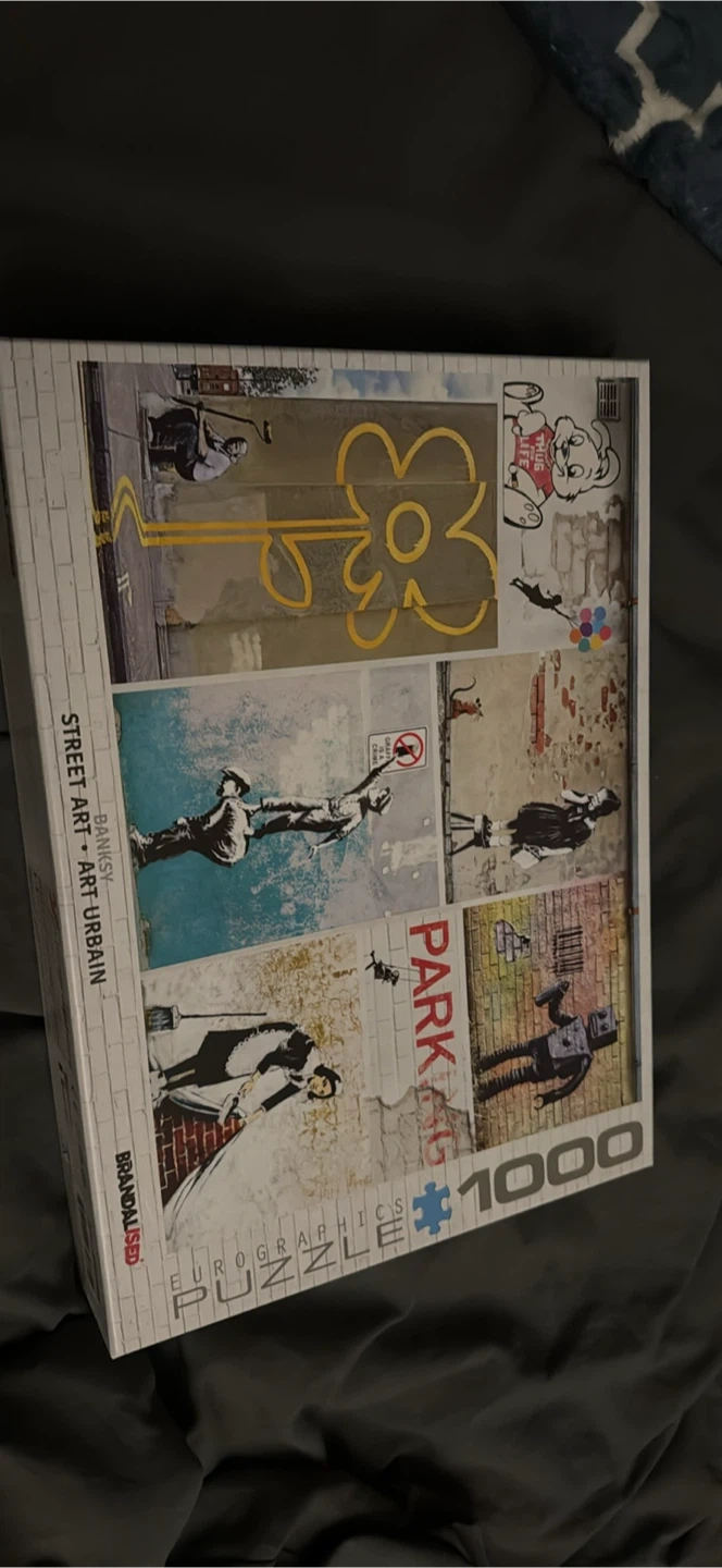 Selling a collection of 1000 piece puzzles. Includes: - Eurographics Globetrotter Canada puzzle - White Mountain The 1980's puzzle - Eurographics Banksy Street Art puzzle - Indigenous Art Messenger From Above puzzle - White Mountain Broadway The Musicals puzzle