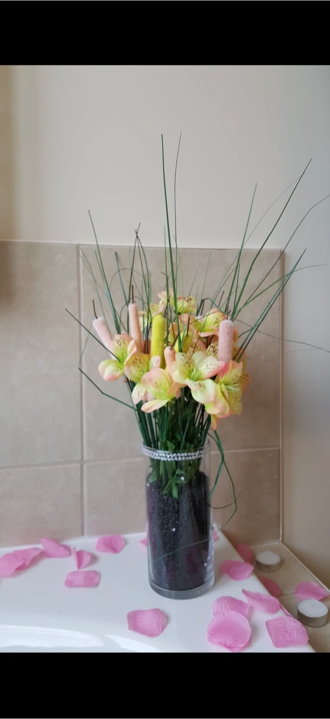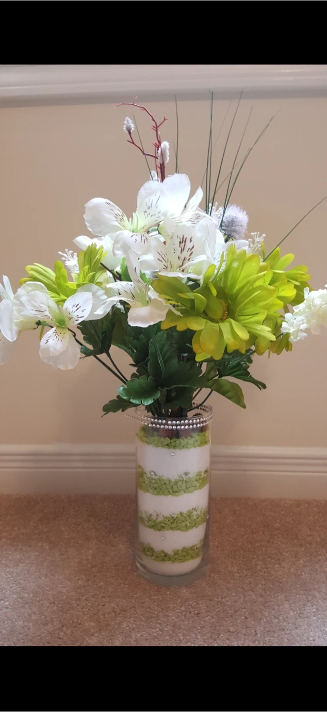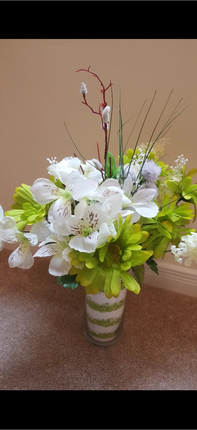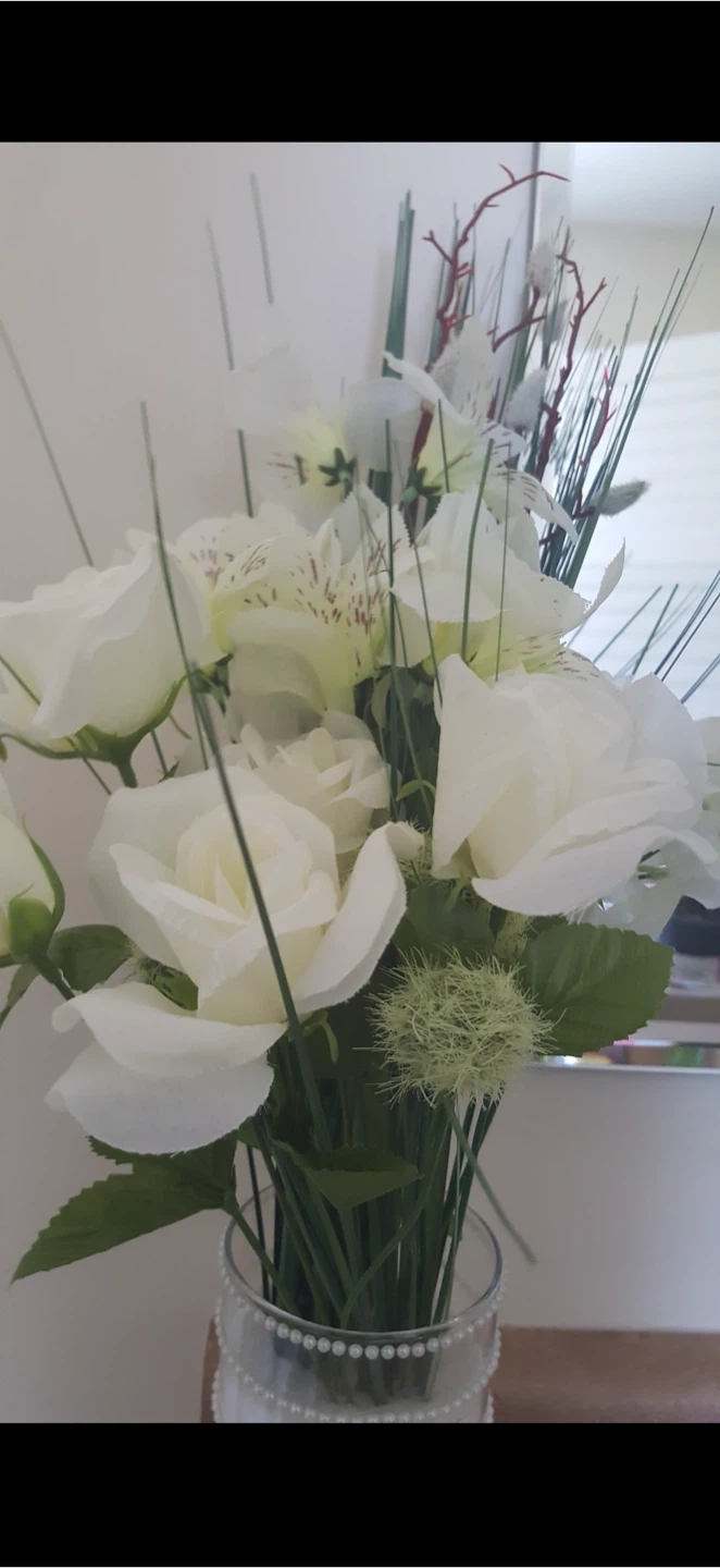 5I have a few artificial flower arrangements available. They would be great for home decor or staging. Each arrangement comes in its own vase. Please let me know if you're interested!