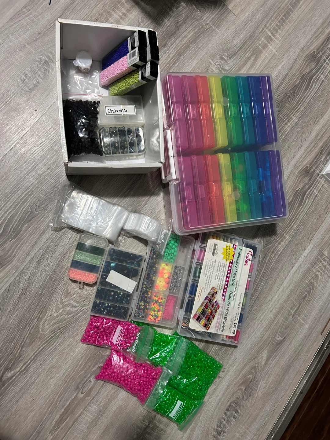 15Lots of beads to make all sorts of cool bracelets, lots of thread to make friendship breakfasts. Keychain stuff as well