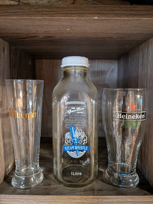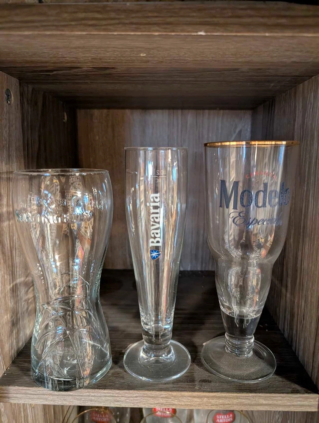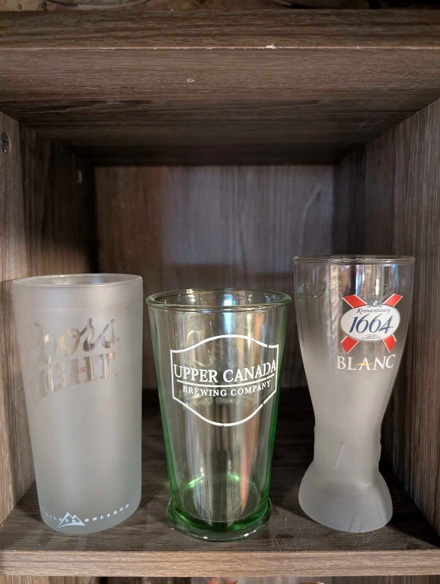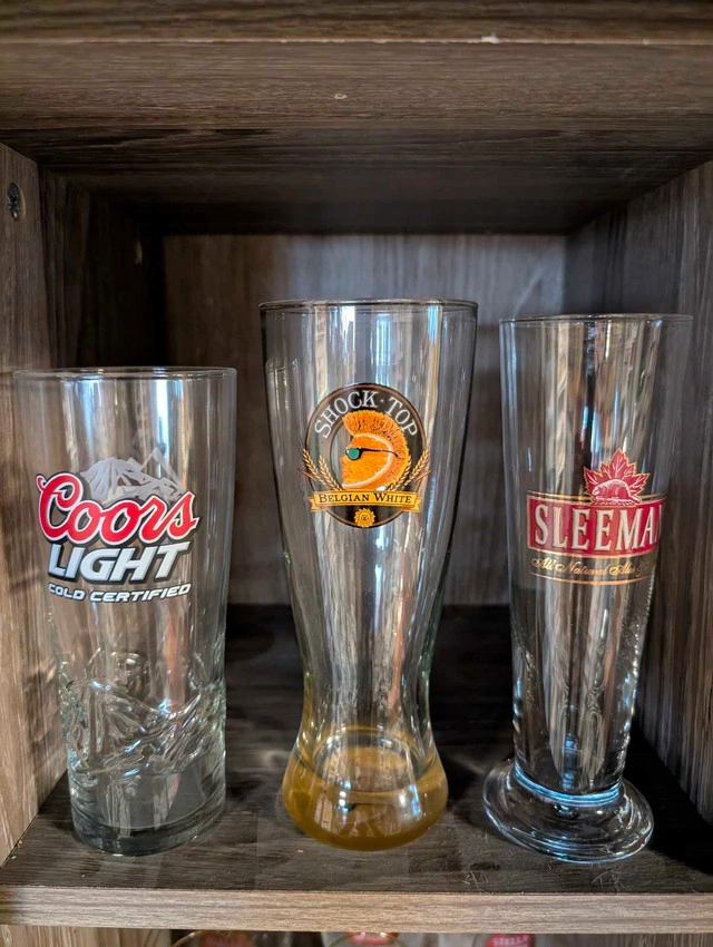 Selling an assortment of Beer Glasses. Perfect for your Bar or Display case. Glasses available: Coors Light (Color) Shock Top Sleeman Coors Light (Frosted) Upper Canada Kronenbourg Blanc Bitburger Steam Whistle Heineken Hop City Barking Squirrel Richard's Red Peroni Strongbow Bavaria Modelo Stella Artois Warsteiner Leffe Guinness Kilkenny Hoegaarden Harp Each Glass has been cleaned - Ready to use $5 each. Pickup and Cash only.