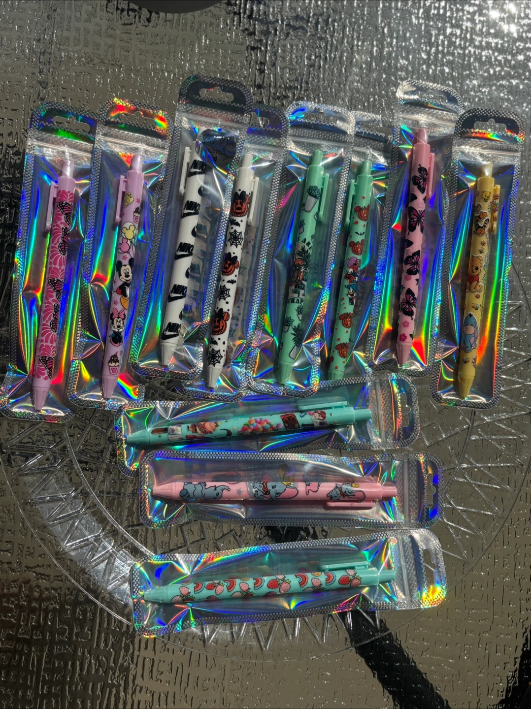 I'm selling these brand new character pens! They come in assorted designs including Disney characters, Nike, and other cute patterns. Perfect for adding a bit of fun to your writing or drawing $2