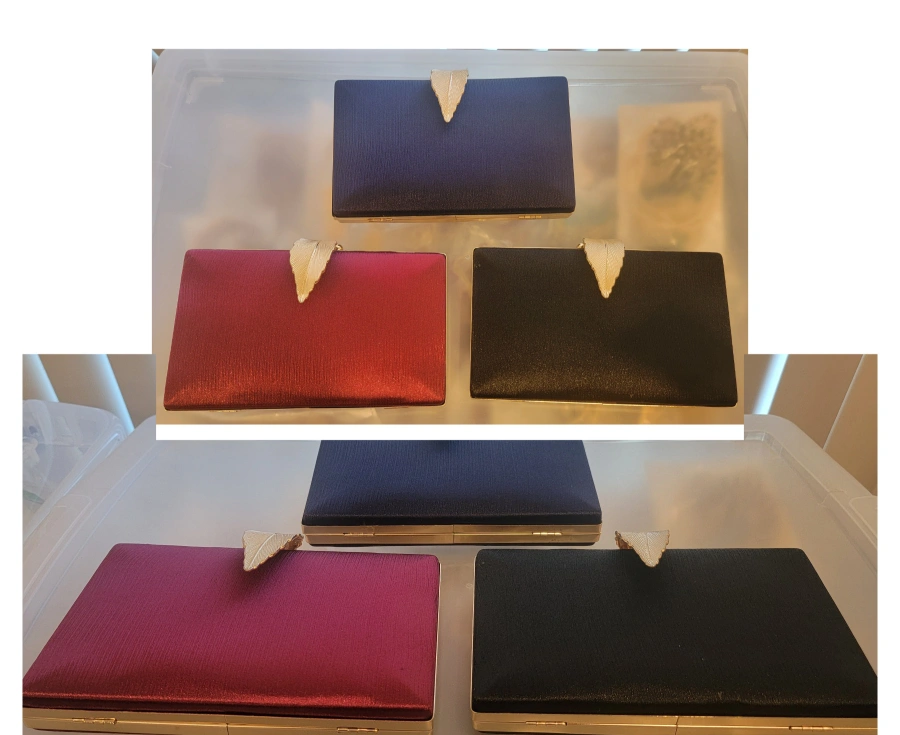 10A collection of clutch bags in various colours! These clutches feature a metallic clasp in the shape of a leaf. Perfect for all occasions.