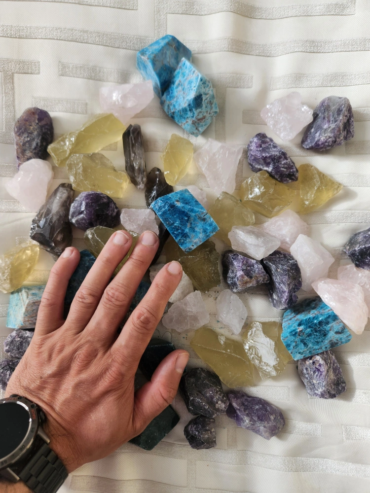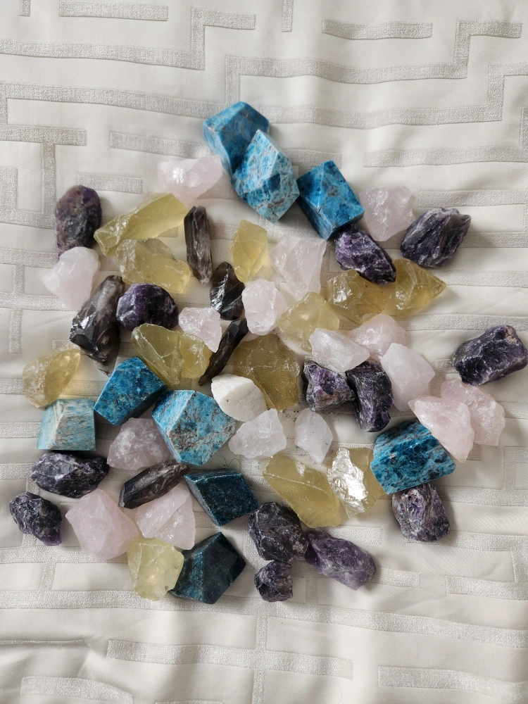 Selling a collection of assorted crystals and gemstones. There are various colours and types, including blue, purple, white, yellow and brown. These would be great for crafting, collecting, or decoration!