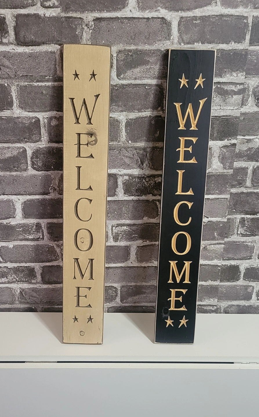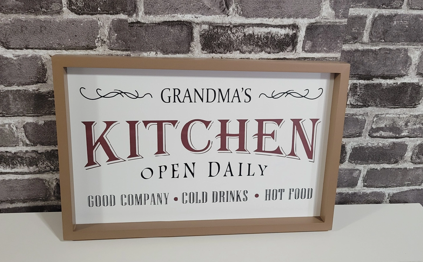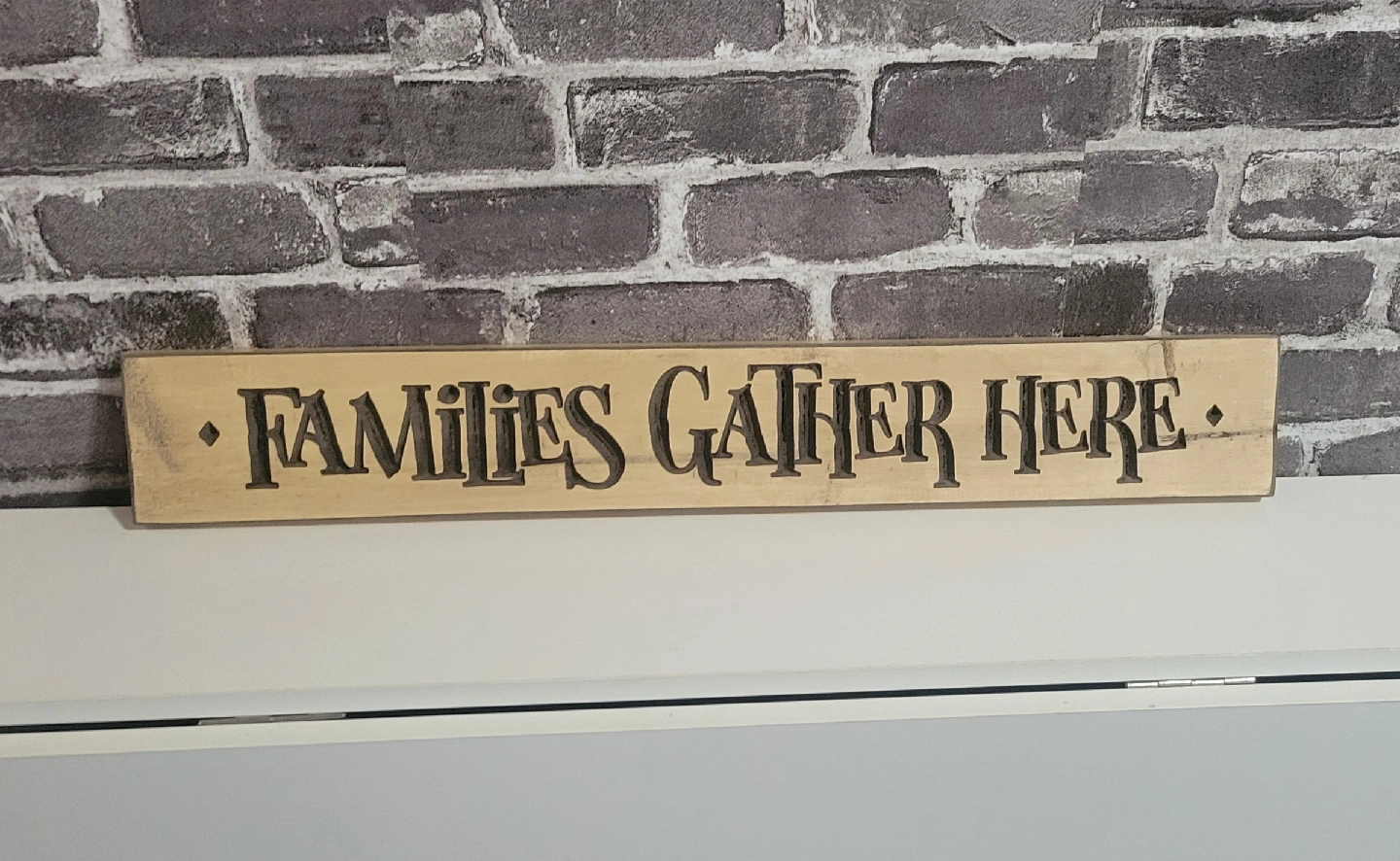 10I'm selling a collection of decorative wall signs. They each have a unique design and would be perfect for adding a touch of charm to any room. They include: - "Families Gather Here" wooden sign - "Welcome" wooden signs (one beige, one black) - "Welcome To Our Bar" round wooden sign - "Families are Forever" framed sign - "Grandma's Kitchen" framed sign prices vary $15 -$25