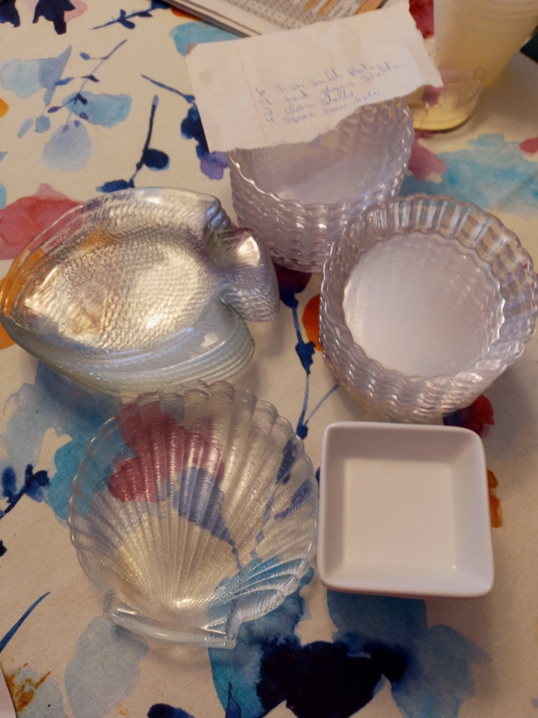 28Selling a collection of assorted glass dishes! There's a shell-shaped dish, some ramekins, and a few small bowls. Perfect for serving snacks or desserts