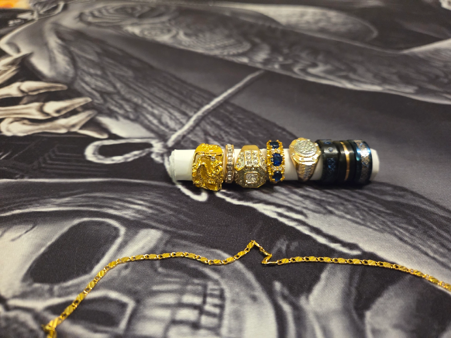 26Selling a collection of assorted gold plated rings and a gold plated chain. They're in good condition and ready for a new home!and watchs for men and women fashion
