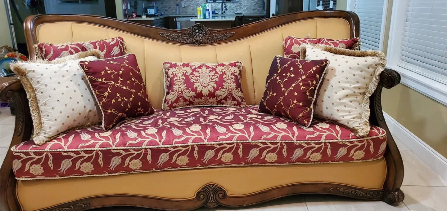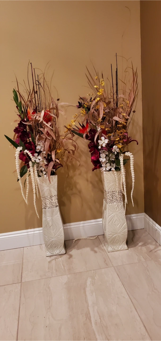 10Selling various pieces of home furniture and decor items. Includes chairs, sofas, vases with floral arrangements, and decorative pillows. All items are in good condition and would add a touch of elegance to any home