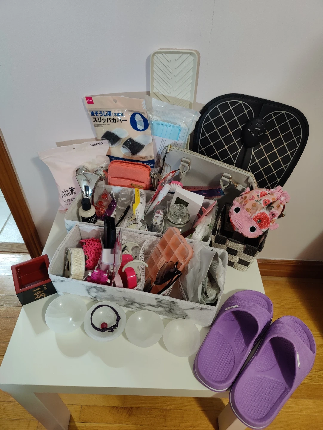 A variety of items are available, including slippers, organizers, and other accessories. Please inquire if anything catches your eye!