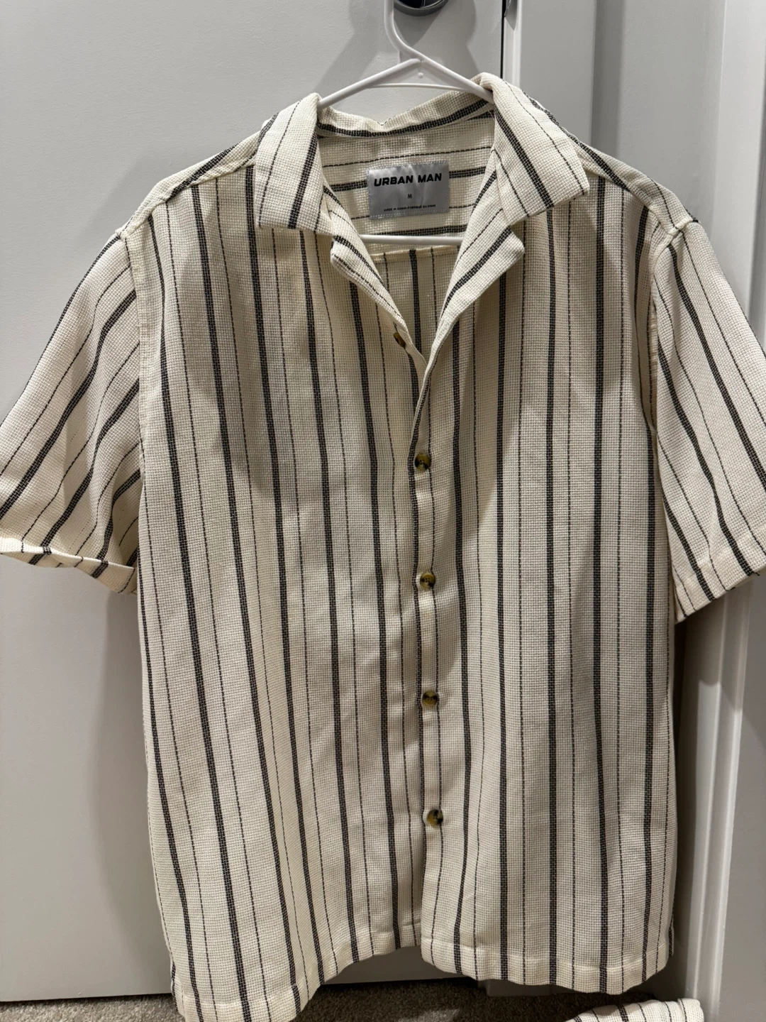 5Batch of 5 branded men's shirts! Included are: -A navy blue Lacoste polo, size M -An Urban Man striped short-sleeve shirt, size M with matching shorts -A Jack & Jones rust-colored polo shirt, size S - sweater long sleeve - hamabe beach shirt