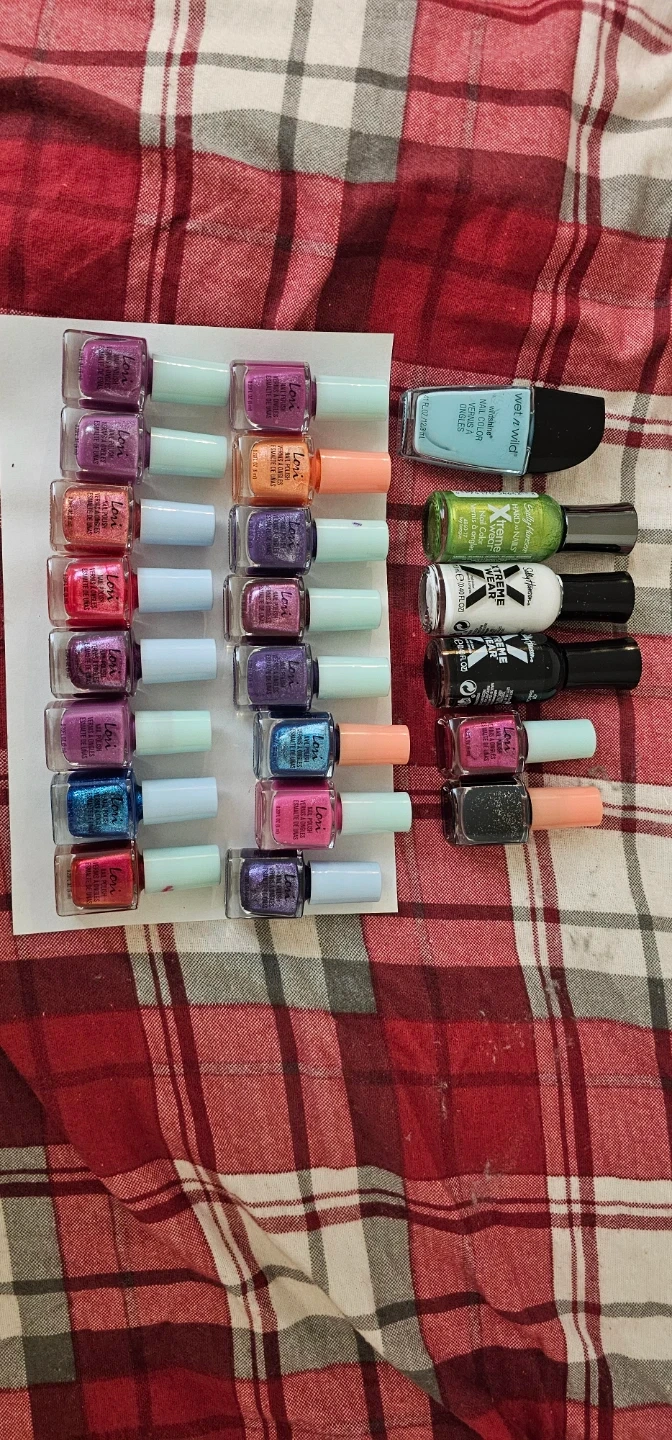 18Selling a collection of nail polishes including brands like Lori, Wet n Wild, and Sally Hansen! Lots of different colours to choose from. Most of them used, but in good condition All 22 goes together