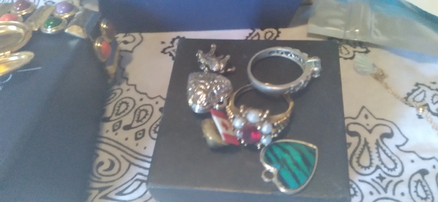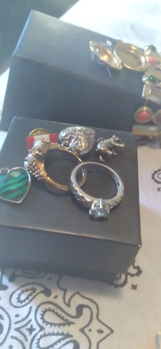 Selling a collection of assorted rings and jewellery pieces. Includes a variety of styles and materials. Perfect for adding to your collection or for crafting projects! Comes with a box.