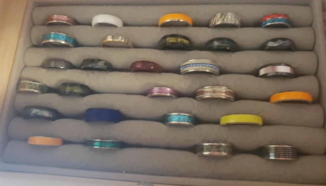 65A collection of assorted rings in various colours and designs. Perfect for adding a unique touch to your style!