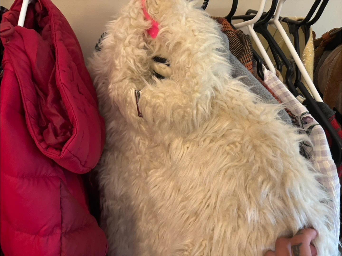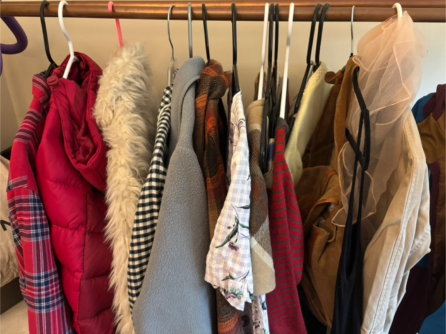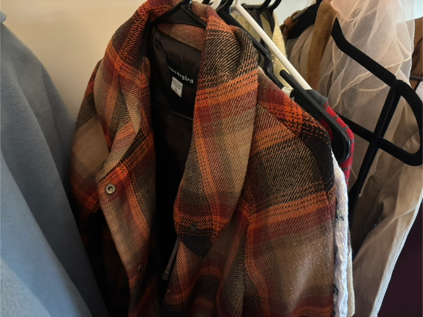 60I'm selling a variety of used clothing items. There's a mix of styles and brands available. Take a look and see if anything catches your eye! Red plaid men’s coat size L $30 White Wilfred fur coat size S $15 Beige and red plaid coat size M $5 Vintage plaid lilac long dress size M (great for weddings!) $20 Beige plaid baby doll dress $10 2 slip dresses (baby blue size S and light yellow size L) $5 each Vintage red striped long sleeve size M $5 Suede Wilfred backpack $10