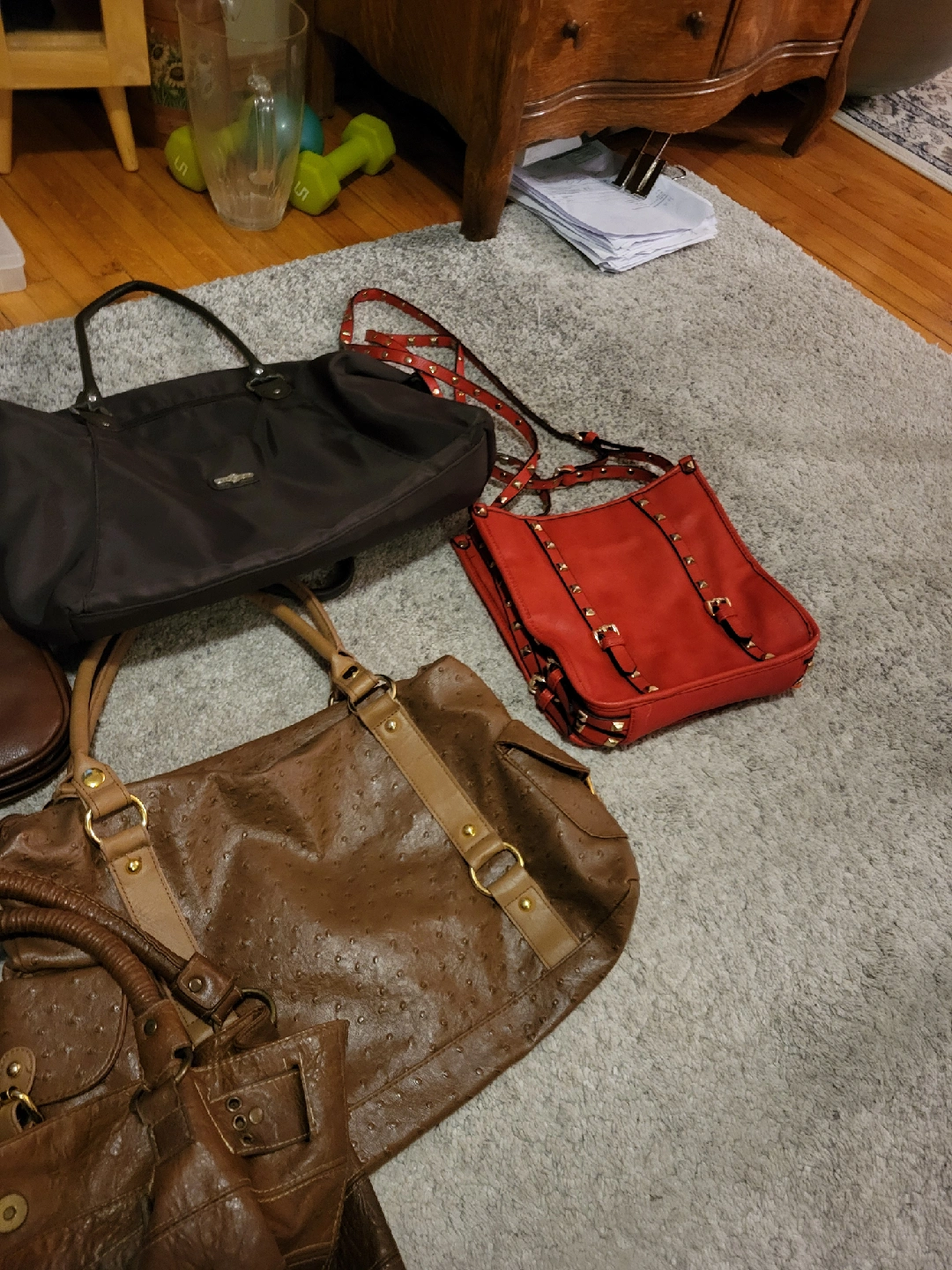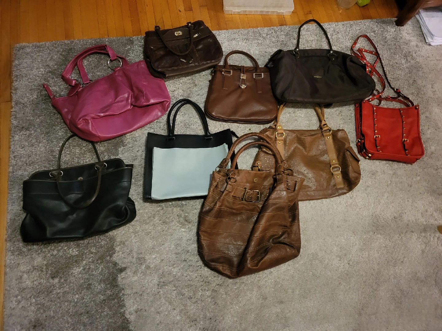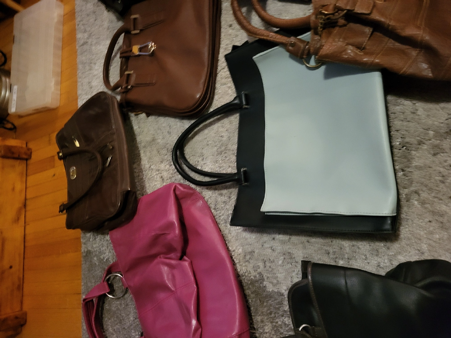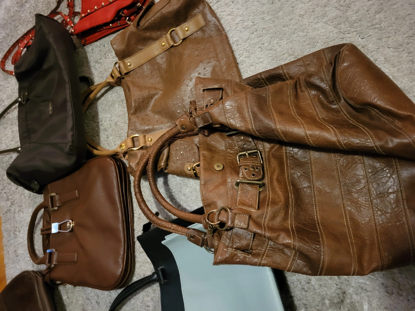 A collection of used handbags in various styles and colours. Great for anyone looking for a variety of options! $5 each!!!