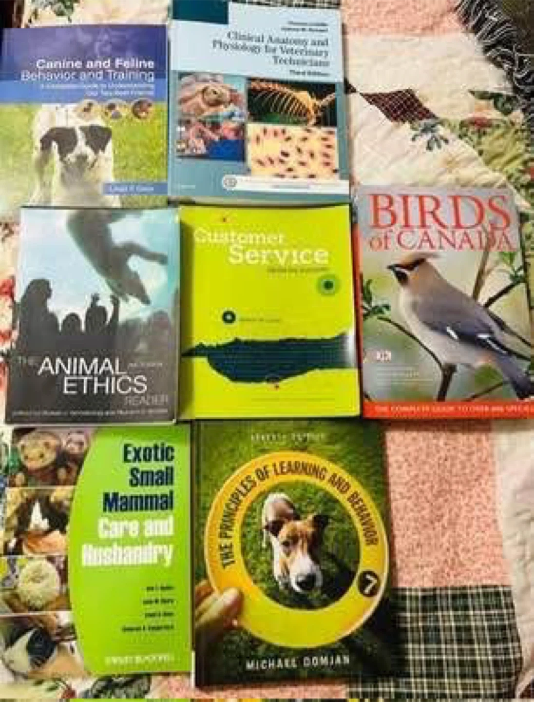 Selling a collection of books related to veterinary science and animal behaviour. Titles include: - Canine and Feline Behavior and Training - Clinical Anatomy and Physiology for Veterinary Technicians - The Animal Ethics Reader - Customer Service - Birds of Canada - Exotic Small Mammal Care and Husbandry - The Principles of Learning and Behavior Each book has a different price that between $40-$60 Message me which textbook you'd like If buying more than one, we can negotiate a reasonable price Books are in good condition no markings or tears