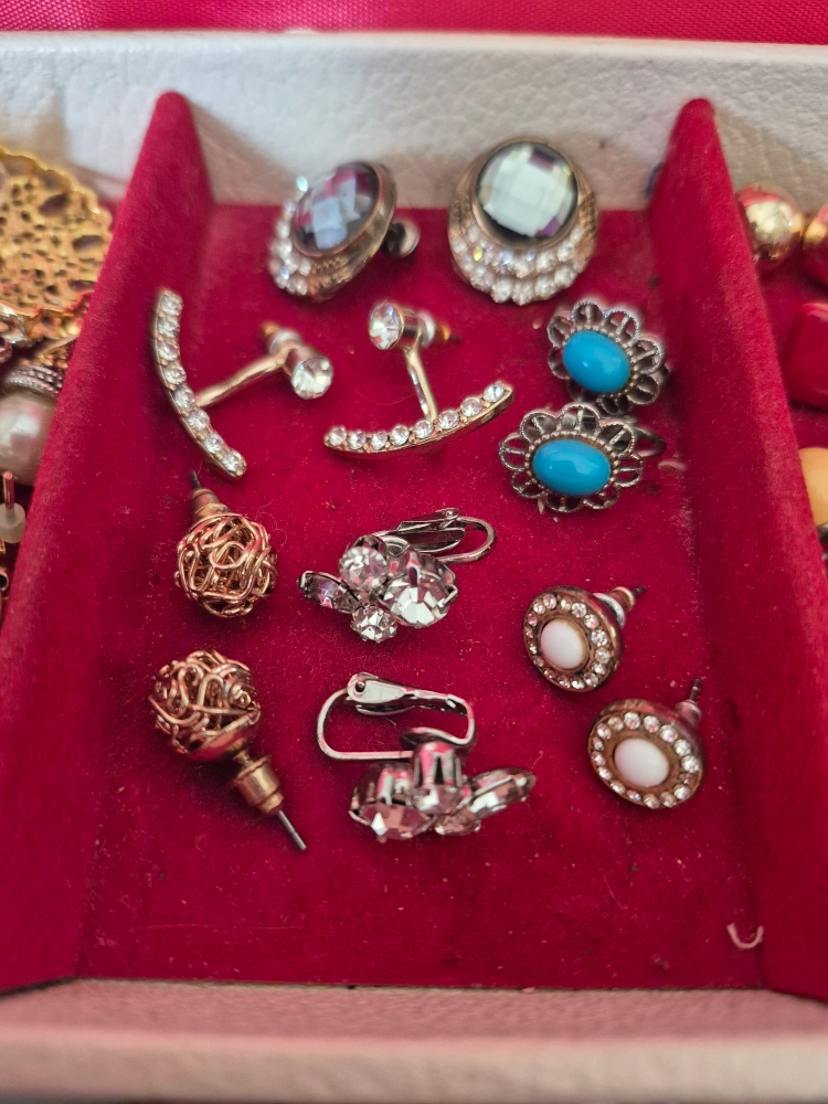 Collection of pre-owned earrings. Various styles and colours. Mixed metals and stones. Clip-on and post earrings included. $2.00 each. make me an offer.