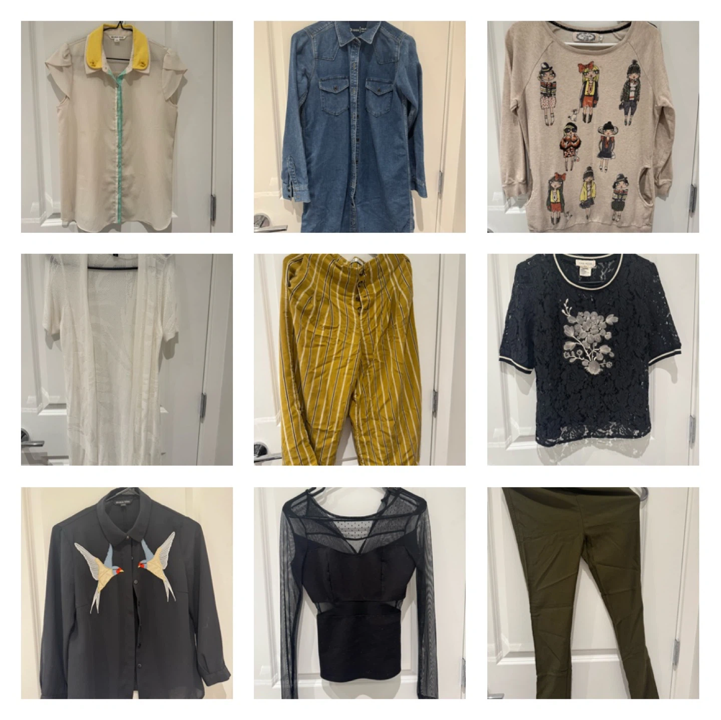 10Selling a variety of women's clothing items. Includes dresses, sweaters, tops, and skirts in various styles and colours. All in great condition and ready for a new home!