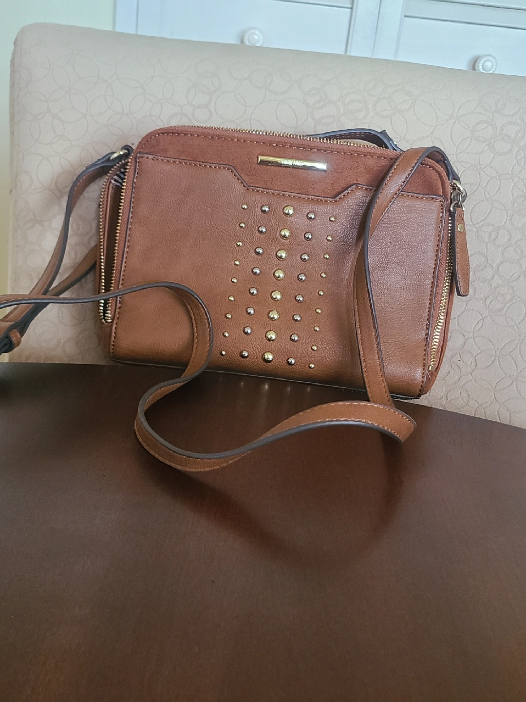 Selling a few different purses. There is a straw purse with pearl accents, a brown studded purse, and a leopard print purse. All in good condition!--used only twice, straw purse is new & other 2 are Nine West purses, each for $20