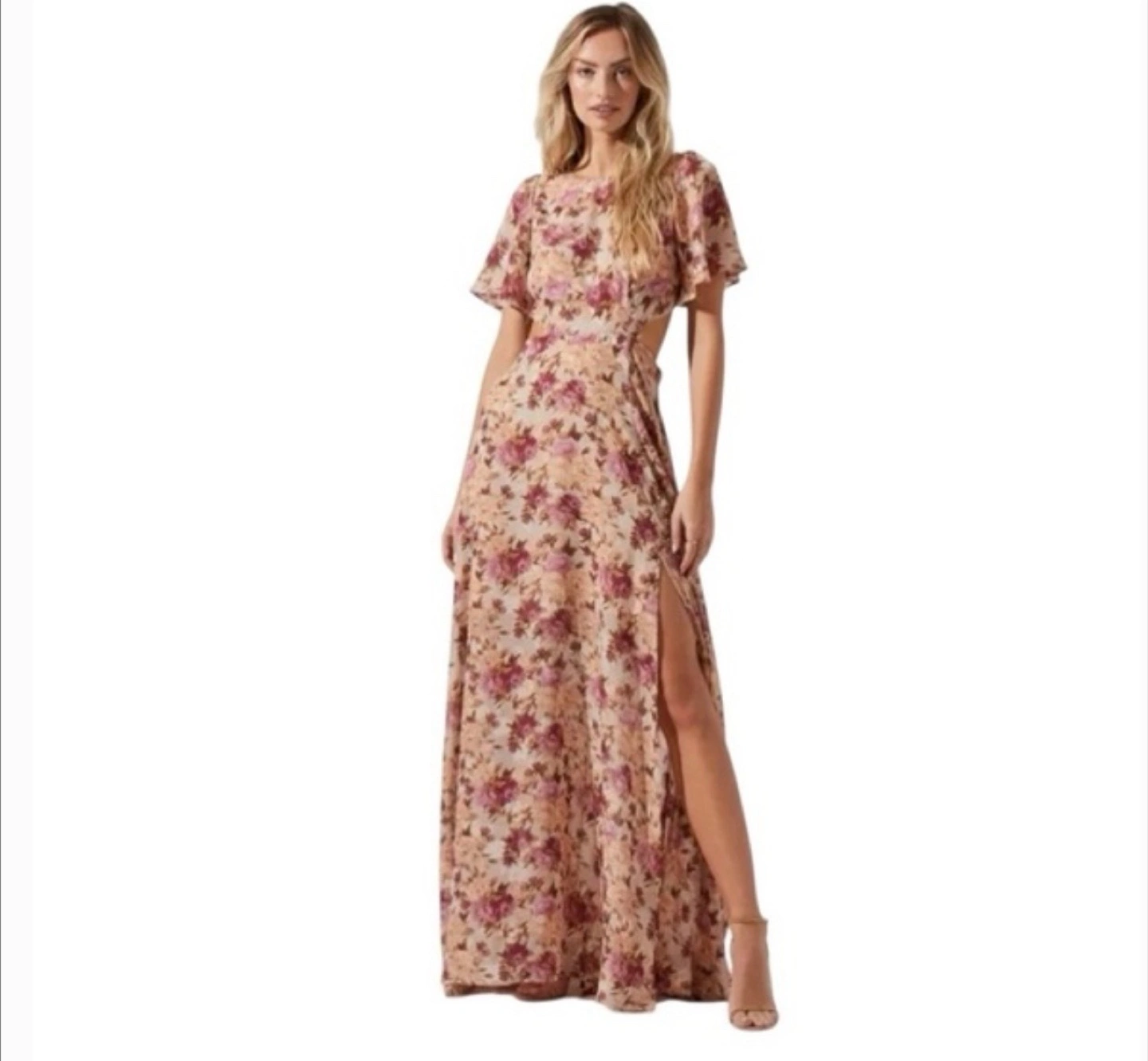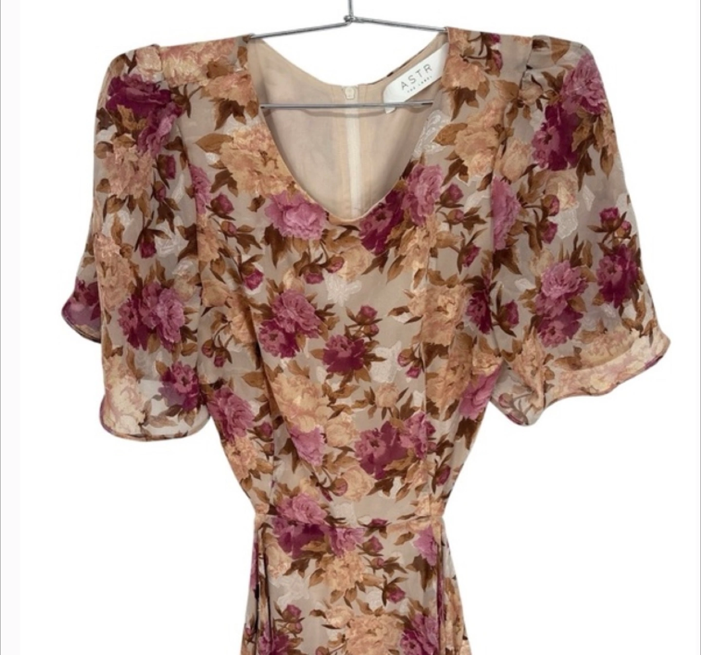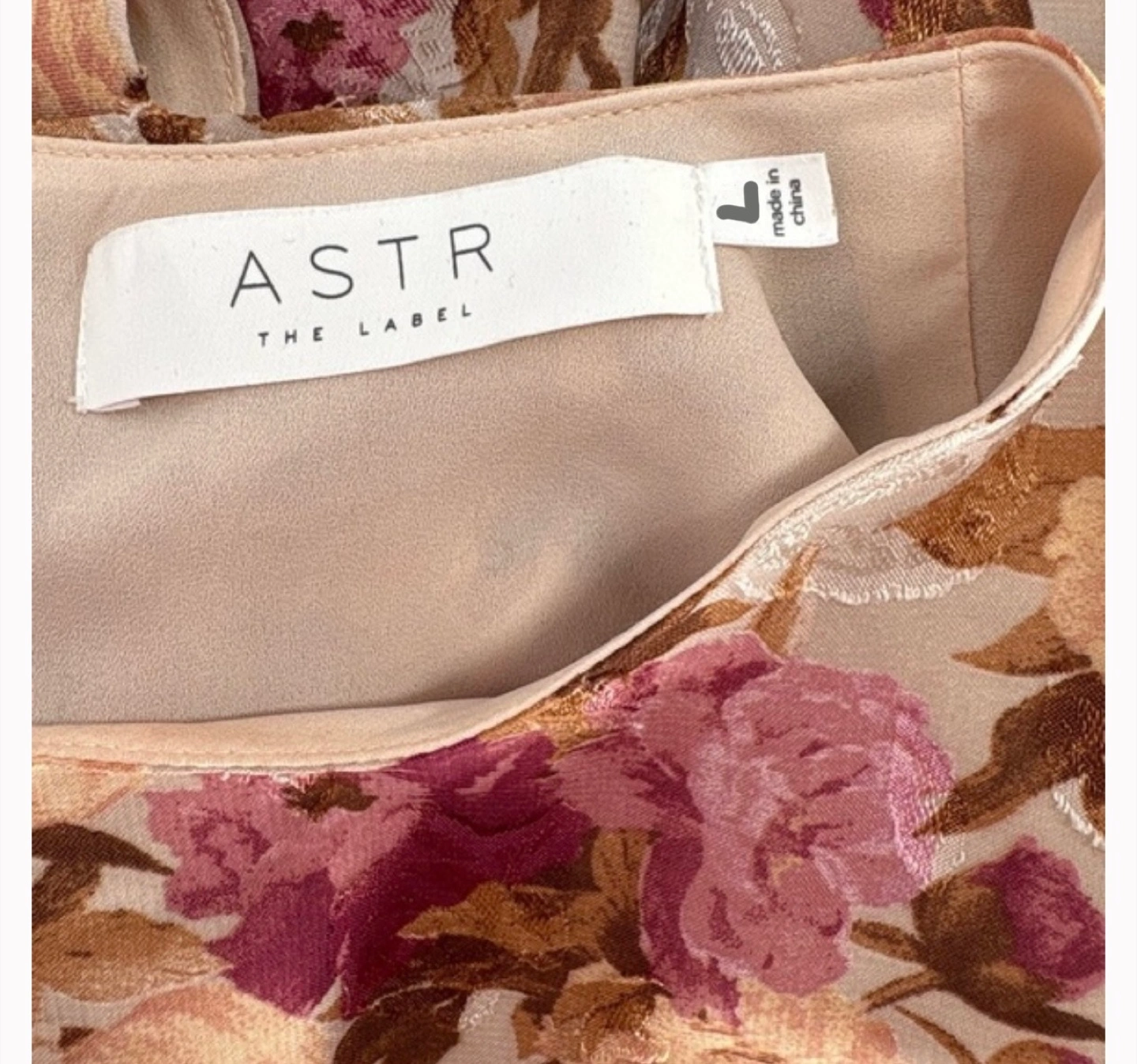 39Used, This is a beautiful floral maxi dress from ASTR the Label in size L. It features a lovely floral pattern and a flattering silhouette. Perfect for a special occasion or a summer day out!