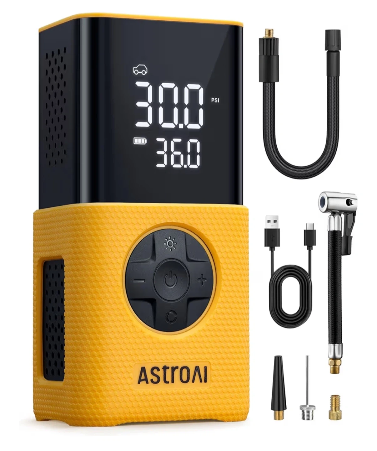 10Selling a portable air compressor pump from AstroAI. It's in great condition and ready to use. Perfect for topping up your tires or inflating other items around the house