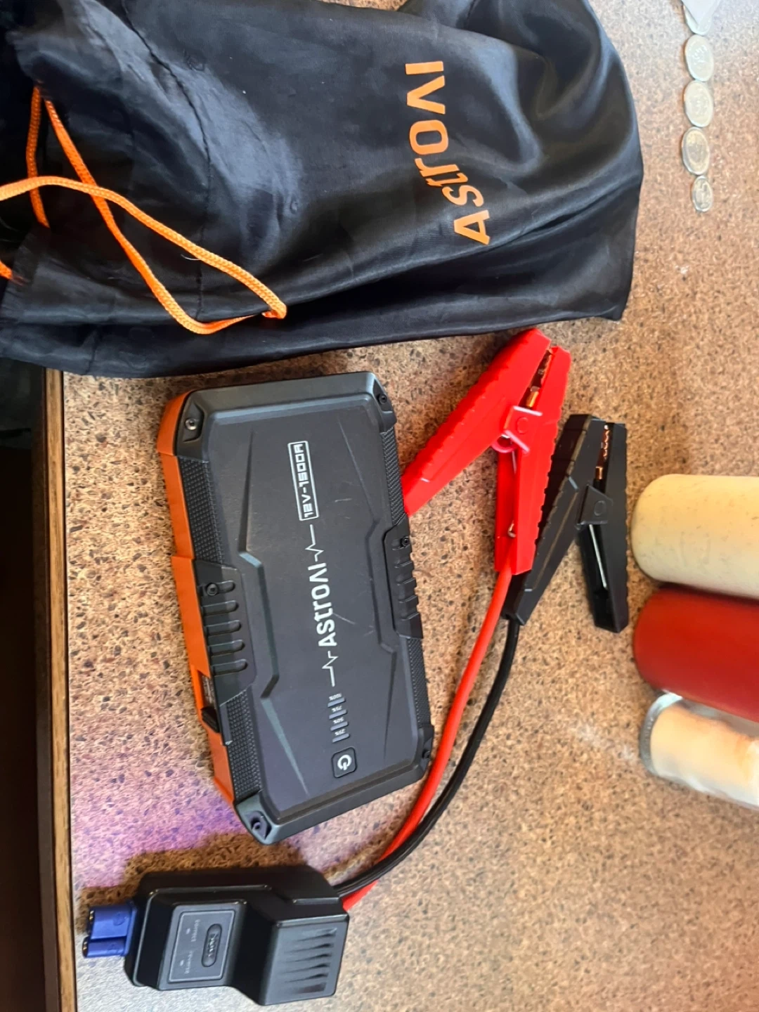 Selling an Astron portable car jump starter. It comes with its carrying bag and the jump leads. It's in great condition and ready to help you out in a pinch!