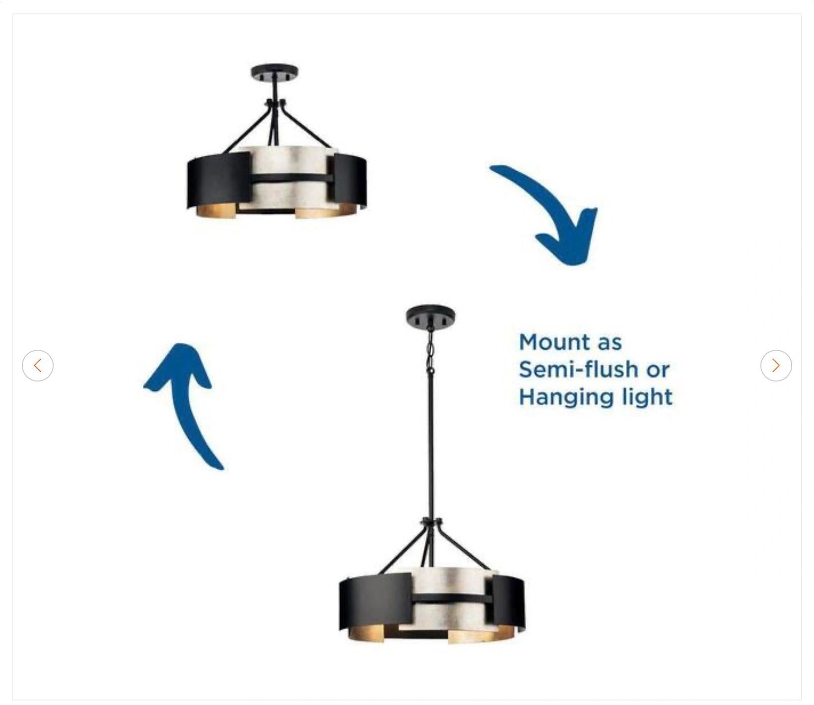 Brand New Progress Lighting P350203 Lowery 3 Light 19" Wide Semi-flush Ceiling Fixture. Raise the bar on contemporary design with Lowery. Layered rectangular shields with leaf panels. Light sources glowing from inside the structure cast a shimmering reflective illumination that highlights the beautiful contrast between light and dark. Lowery delivers a stately ambient light to breakfast nooks, bedrooms, halls and foyers in luxe industrial, contemporary and rustic modern settings. This fixture is part of the Progress Lighting Design Series. The light accents halls and foyers, breakfast nooks, and bedrooms with a distinct artistic flair. This versatile light can be mounted to the ceiling for use as a semi-flush mount, or convert to a pendant using included stem and chain. This product can be mounted to the ceiling as a semi-flush and includes one 6 inches and four 12 inches stems for hanging as a pendant. Includes installation instructions and mounting hardware for a quick, easy installation. Constructed from steel. Requires (3) 20 watt medium (E26) bulbs. Capable of being dimmed. Dimensions: Height: 15-3/8", Width: 19", Depth: 19", Chain Length: 9", Wire Length: 120". Electrical Specifications: Max Wattage: 60 watts, Number of Bulbs: 3, Watts Per Bulb: 20 watts, Bulb Base: Medium (E26), Voltage: 120 volts. Bulbs Included: No.