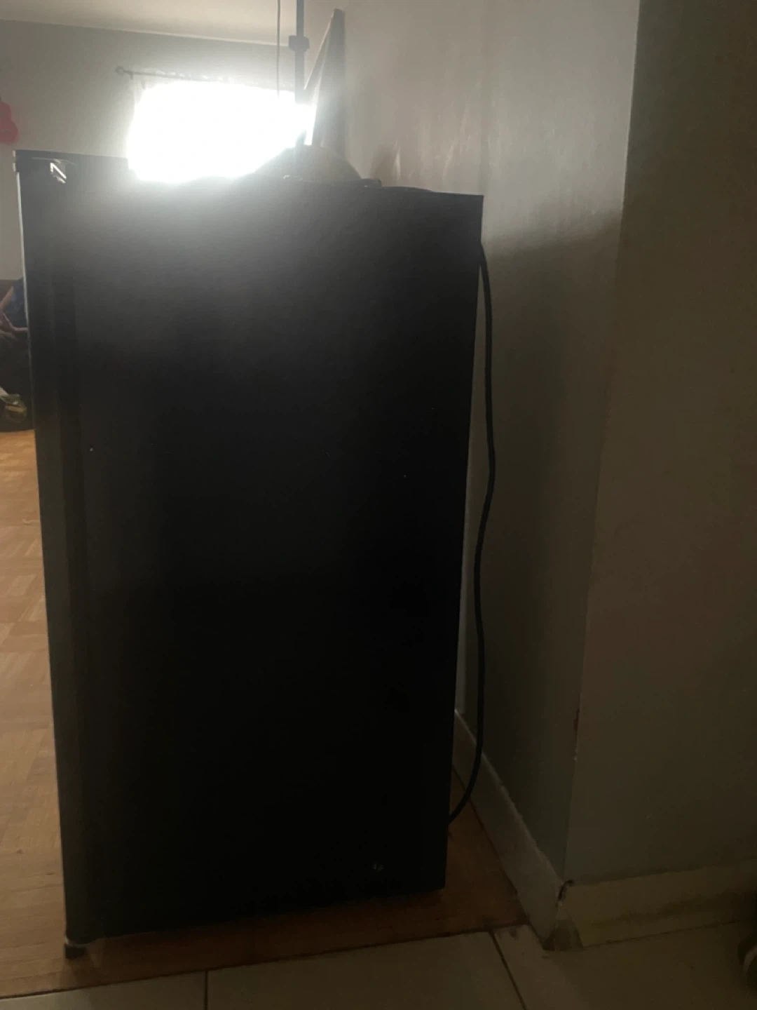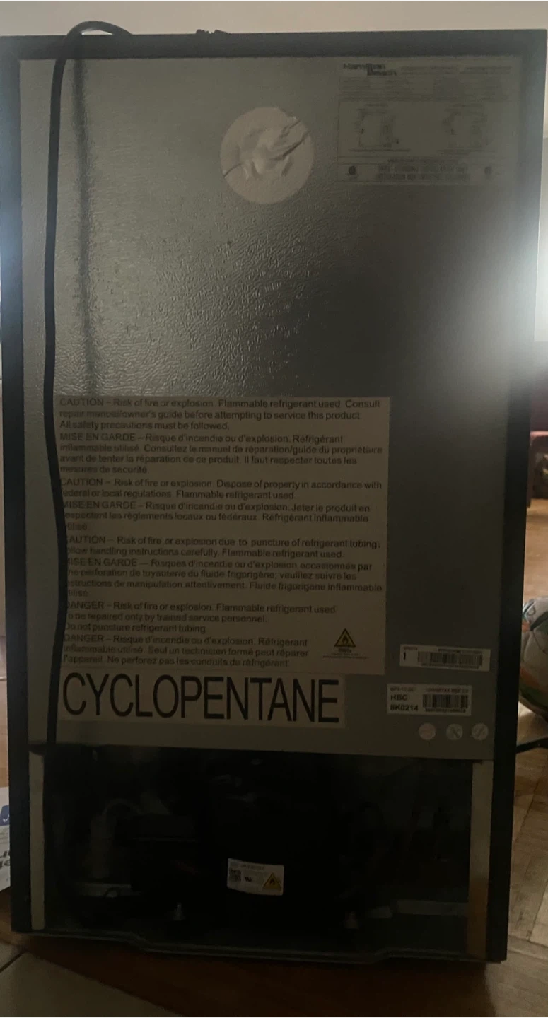 Hamilton Beach compact refrigerator in black. It's a great size for a dorm room or small office. The unit is in good working order.