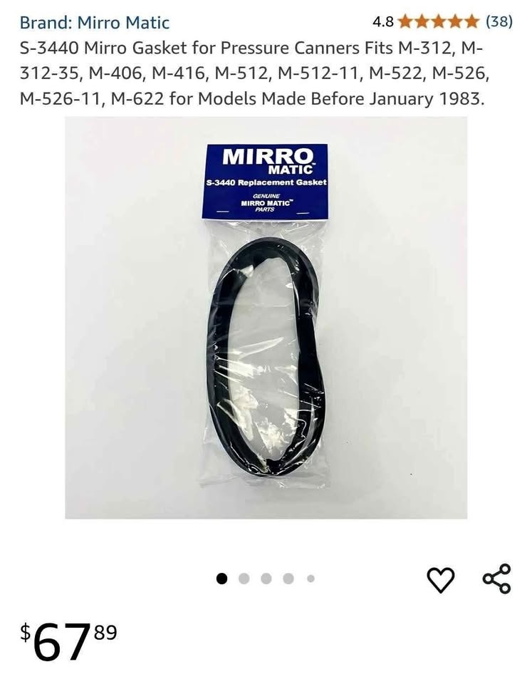 This gasket fits Mirro and Mirro Matic Canners made before January 1983. To confirm, check the date stamp (Month/Year) on the underside of your canner. This gasket will not fit Mirro canners/cookers if the model number begins with 92***.