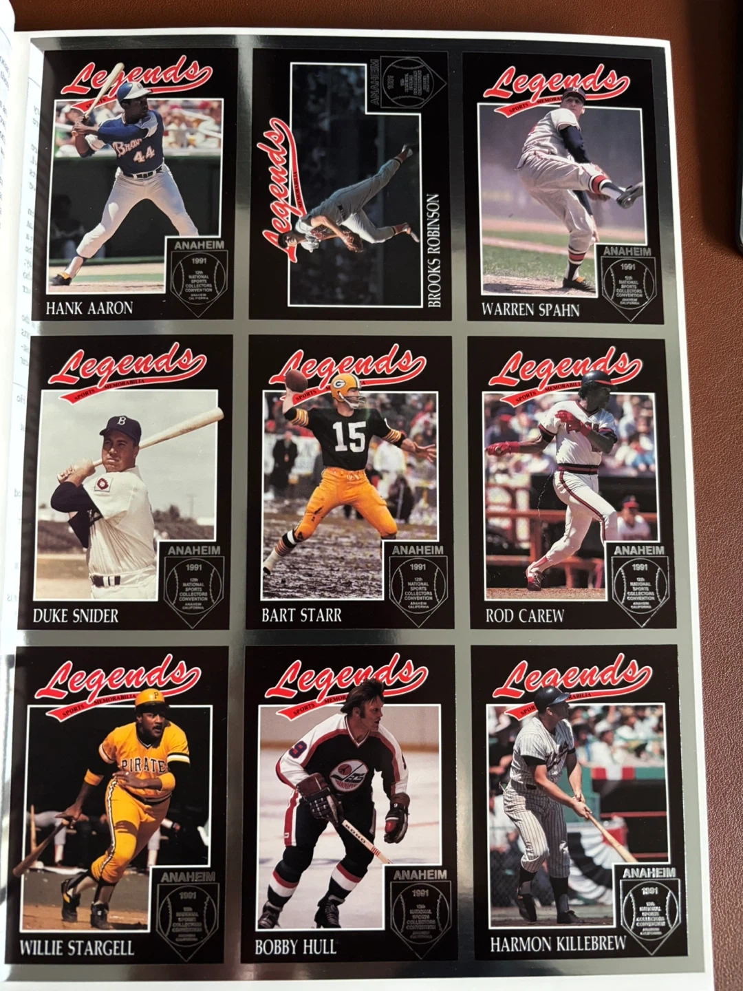 Selling a Legends Anaheim Official Program from 1991, along with some sports cards of Hank Aaron, Bobby Hull, Bart Starr, Warren Spahn and others. Great for collectors!