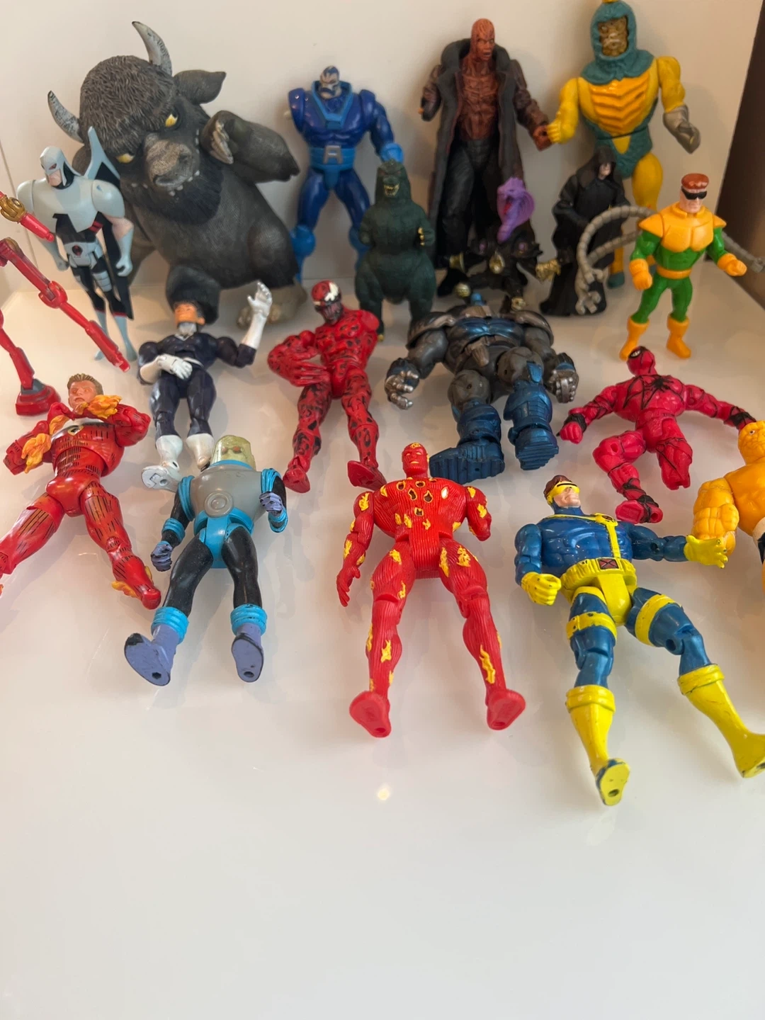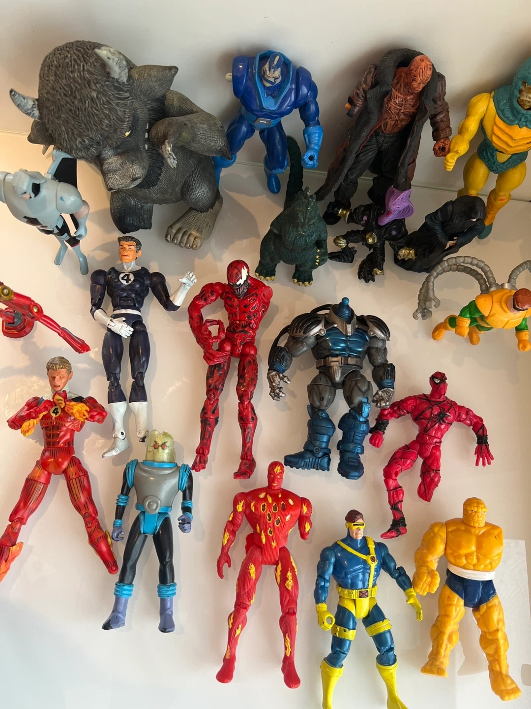 Collection of Marvel action figures featuring various characters. These toys are suitable for fans and collectors. Plastic construction.