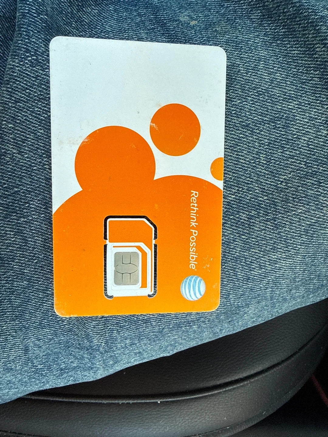 Selling an AT&T SIM card. It says 'Rethink Possible' on the card.