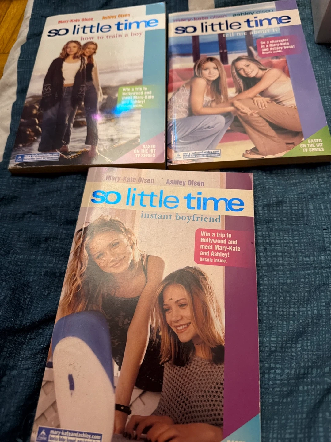 Collection of three 'So Little Time' books by Mary-Kate and Ashley Olsen: 'How to Train a Boy', 'Tell Me About It', and 'Instant Boyfriend'. These books are based on the hit TV series. They are paperbacks and were popular in the early 2000s. Probably never been read