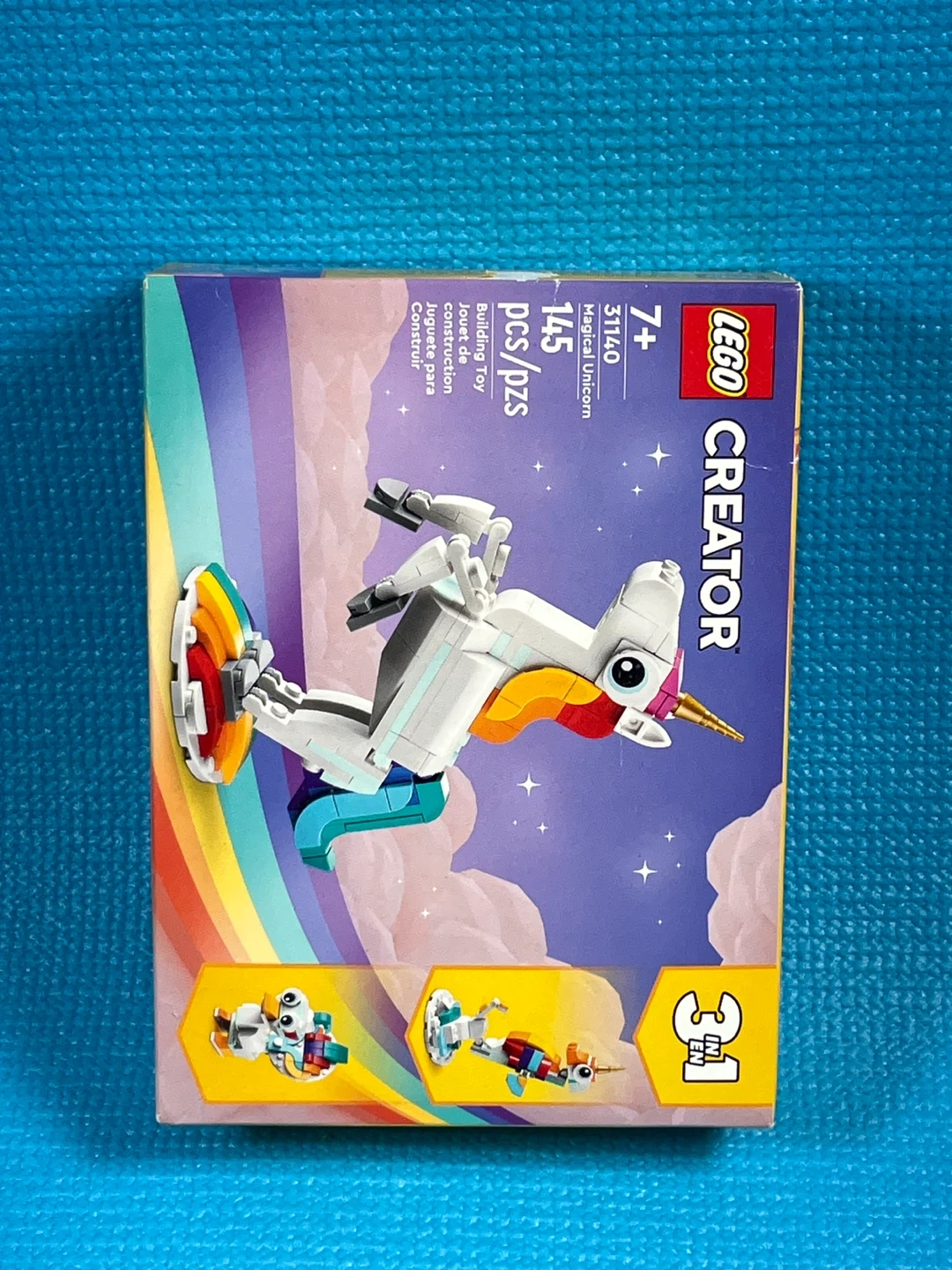 Build a magical unicorn with this 3-in-1 LEGO Creator set! It includes 145 pieces and offers three different building possibilities. Perfect for kids aged 7 and up.