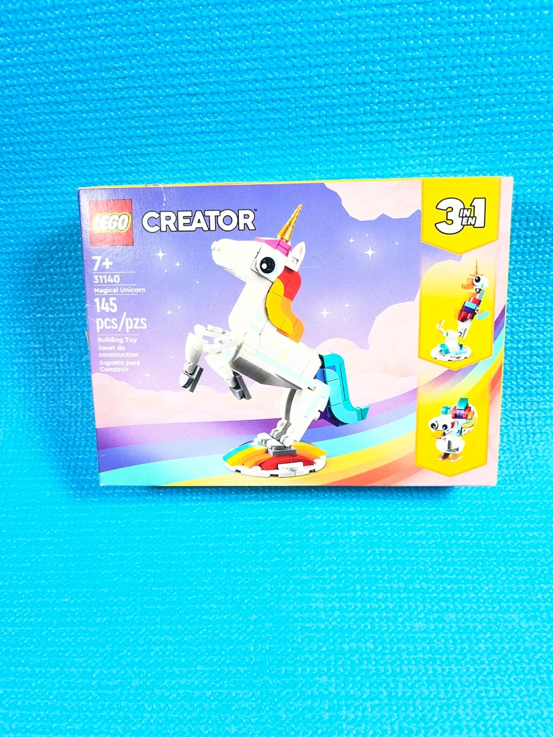 Build a magical unicorn with this 3-in-1 LEGO Creator set! It includes 145 pieces and offers three different building possibilities. Perfect for kids aged 7 and up.