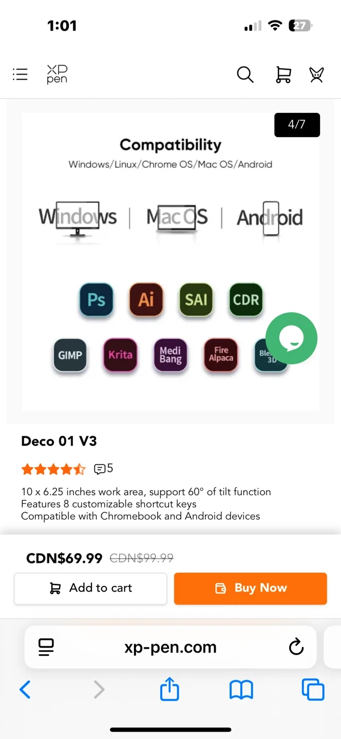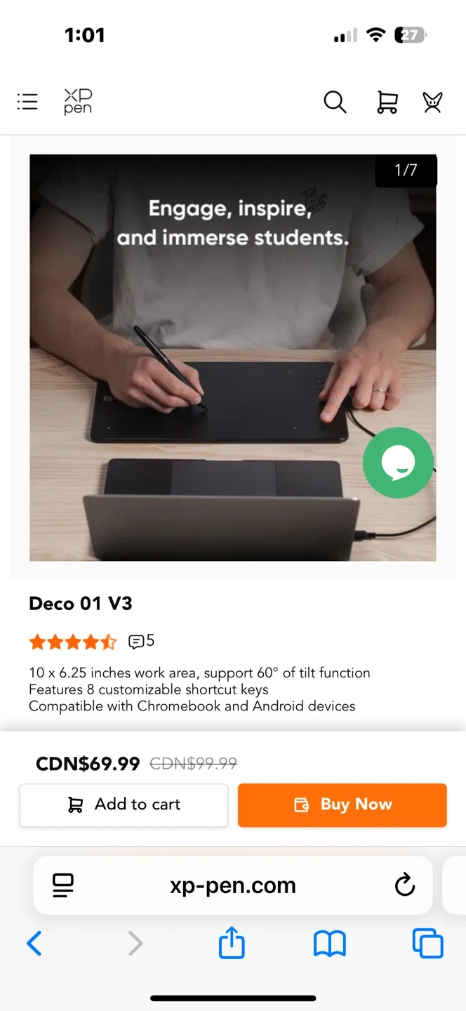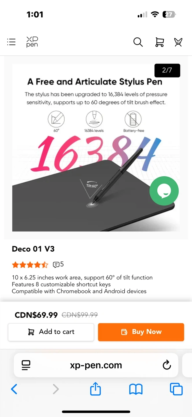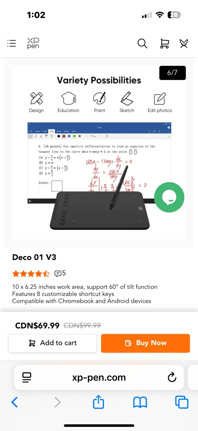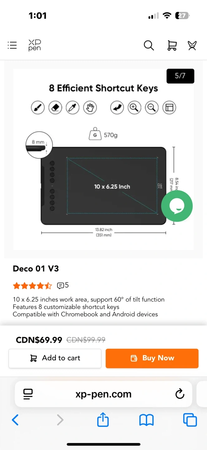 This XP-Pen Deco 01 V3 drawing tablet has a 10 x 6.25 inches work area and supports up to 60° of tilt function. It features 8 customizable shortcut keys and is compatible with Chromebook and Android devices.