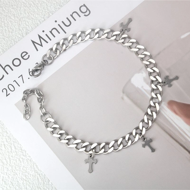 Unisex Stainless Steel Cross Cuban Link Bracelet