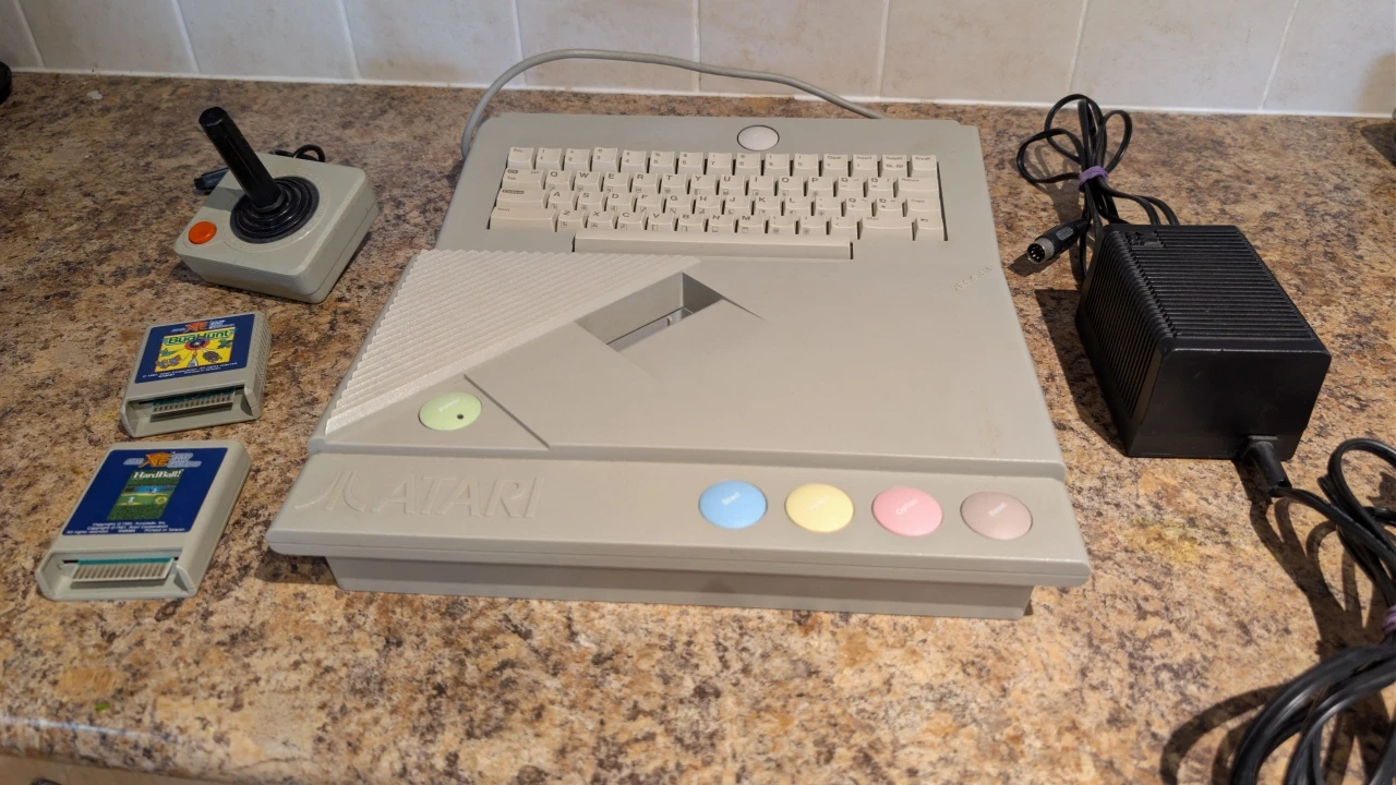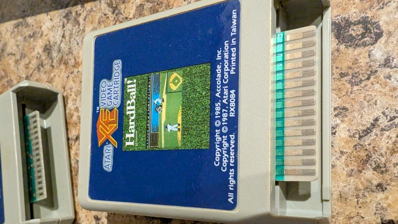566Selling Hard to find Atari XE gaming console with two games, original power adapter, original keyboard and original joystick. It is in good cosmetic shape for its age. It powers on but hasn't been played in years and I do not have video wire or connectionon on t.v to test. Selling as is. The games included are bughunt and Hardball. Not sure where the zapper got to but will include that if I can find. Gaming Retro Atari Collector