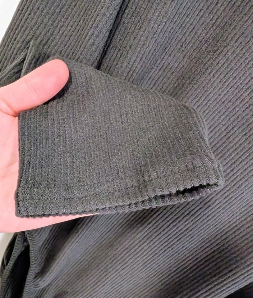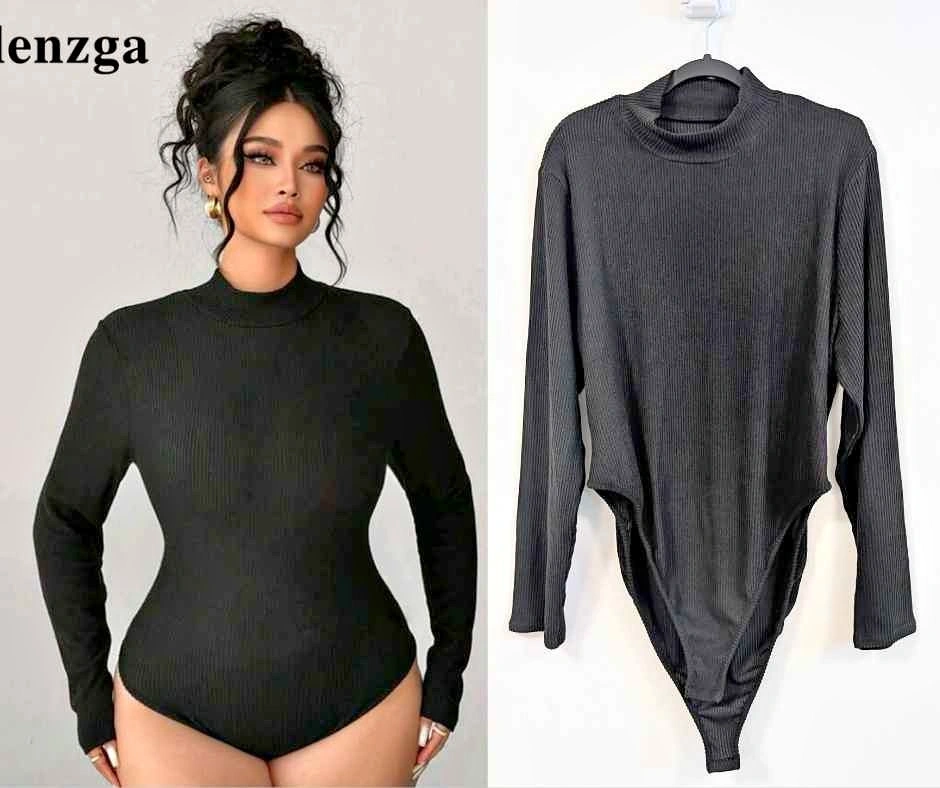 This is a brand new, never worn or washed, long-sleeve turtleneck leotard in black. It's made of fleece-ribbed material and comes with its original packaging. The reason for selling is that the size is too big.