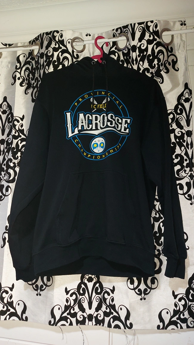 10Selling a black ATC hoodie with a lacrosse design. It's in great condition and is a size medium. Perfect for staying warm!