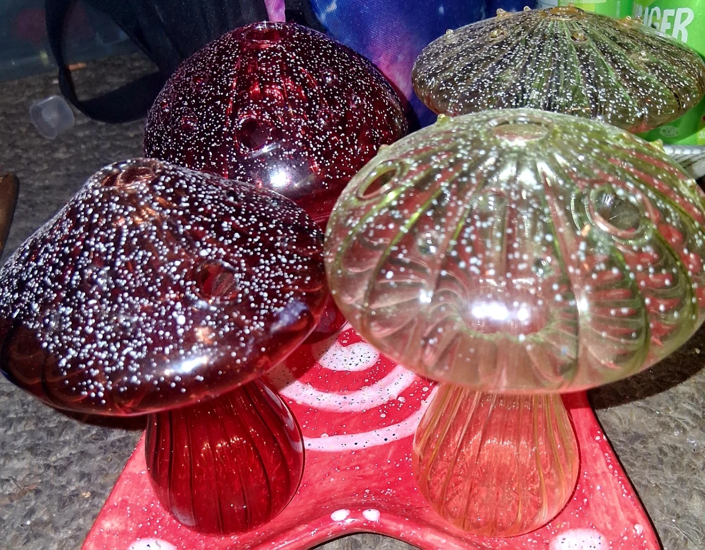 Set of 4 Glass Mushroom Decorations