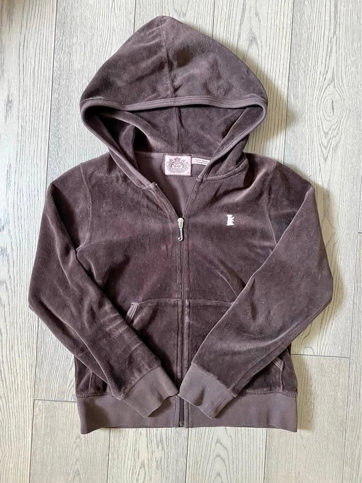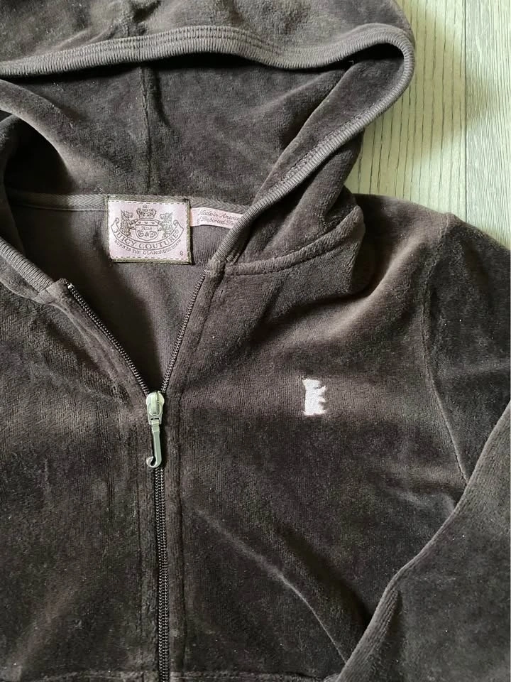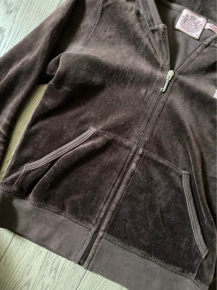 Y2K Juicy Couture Brown Velour Zip Up with Embroidery