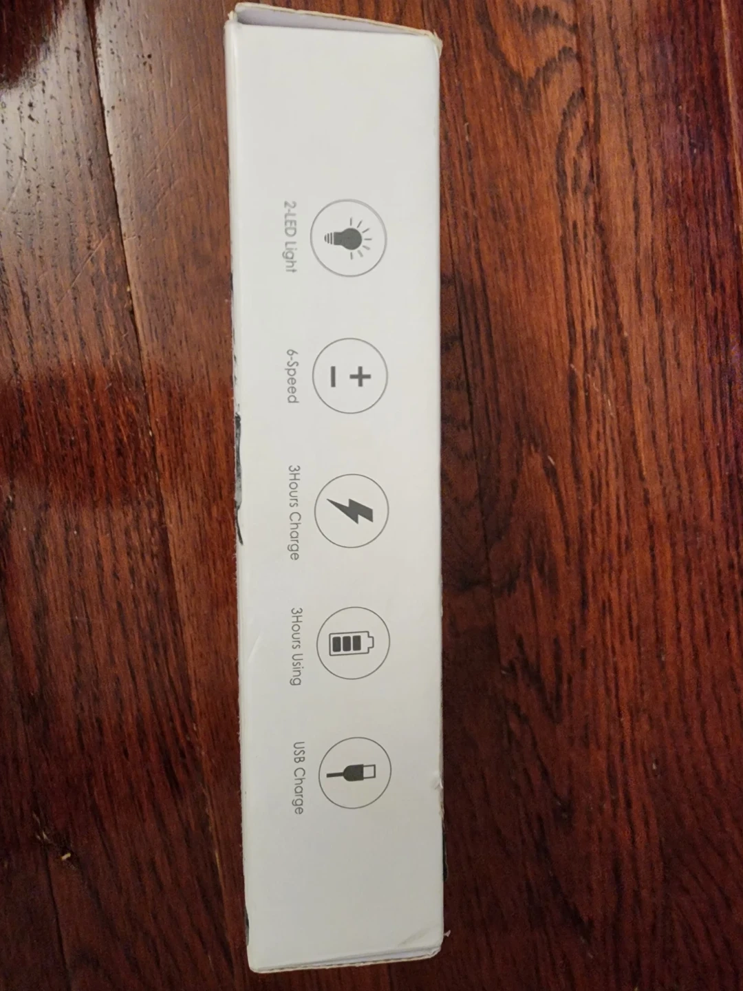 This is a 6-speed professional pet nail grinder with 2-LED light. It features USB charging, a detachable grinding wheel, low vibration and noise, ergonomic handle features, and cordless operation. It takes 3 hours to charge and provides 3 hours of use.